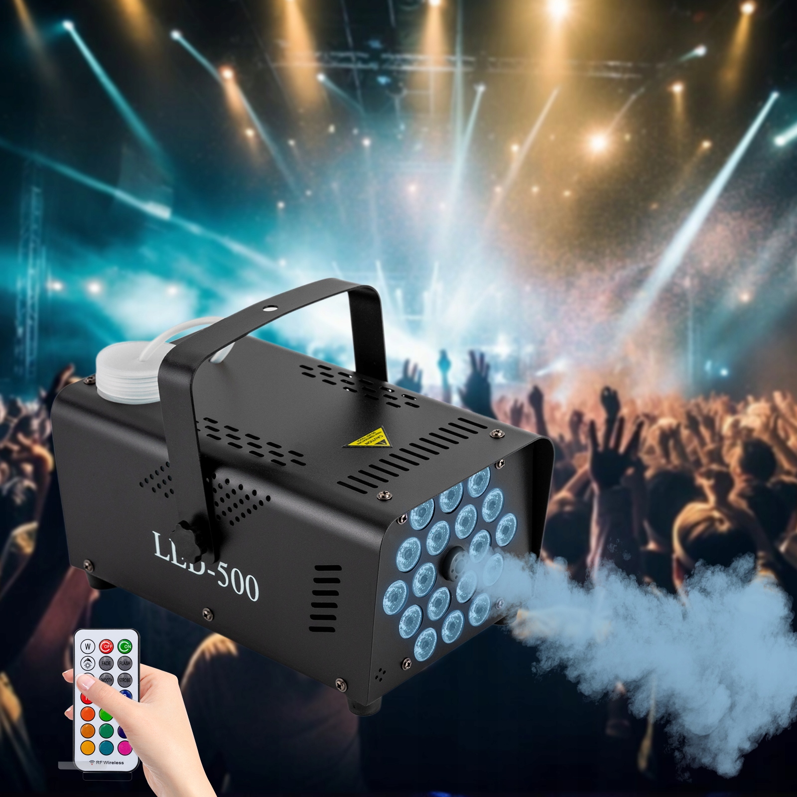 Light4me Fog 500 Светодиод - Light, компактный, очень мобильный и эффективный ✅ Генератор дыма на беспроводном пульте, с восемью светодиодами, работающими в THARLTH , работающий в THRAH . Оборудование отлично работает во время различных типов игр, на вечеринках, вечеринках, DJ Party, а также в небольших танцевальных клубах и дискотеках.