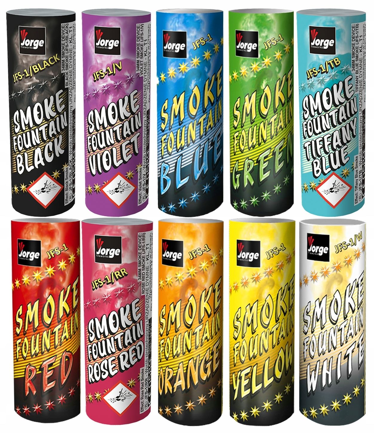 Польская компания Хорхе производит отличные пары в течение многих лет. Они известны на европейском рынке, где они приобрели отличные мнения с точки зрения качества. Высокое содержание смеси пороха в свече выпускает густой дым с чистым цветом. Набор включает в себя 10 дым в 5 цветах. Эффект: интенсивный дым. Идеально подходит для фотосессии!
