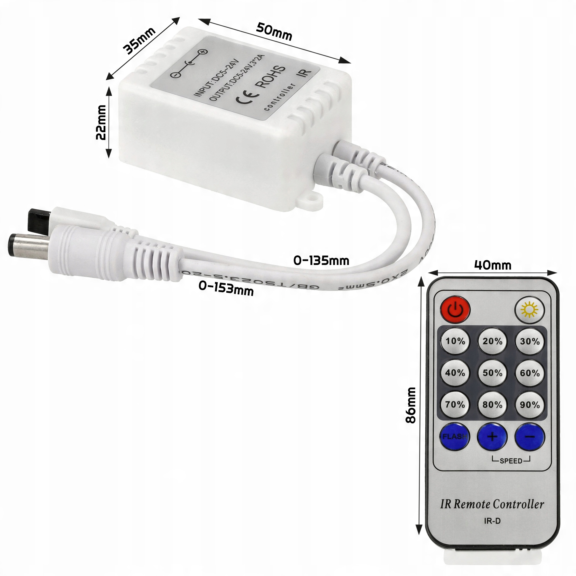✔Контроллер, пульт с диммером для ИК светодиодных лент 6 А 72 Вт, представляет собой устройство управления, предназначенное для для одноцветных светодиодных лент.