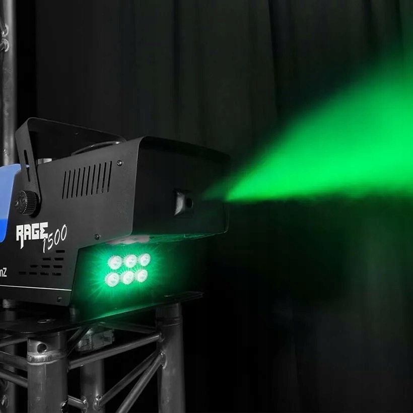 , который четко указывает уровень жидкости в резервуаре. Благодаря высокой мощности в 1500 Вт RAGE1500LED способен производить не менее 350 м³ в минуту. Это делает RAGE1500LED идеальным устройством для больших вечеринок и залов.