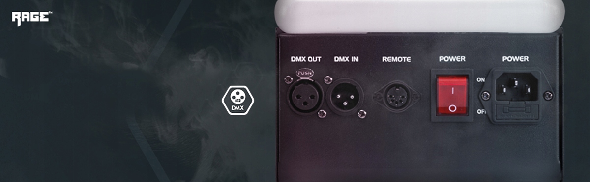Также можно управлять машиной через 6 каналов DMX для полного контроля.