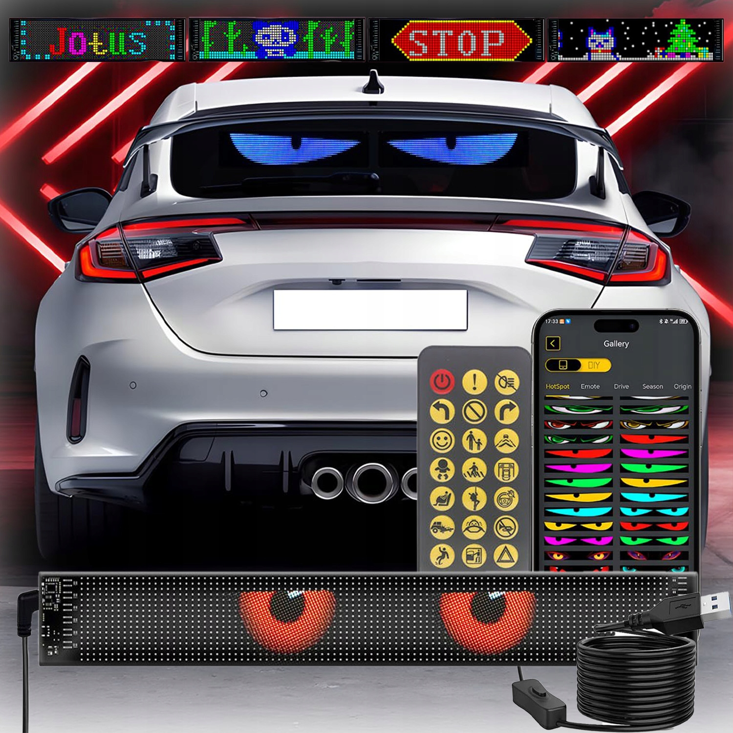 【Применяется ко многим сценам】 Home Dynamic Inteply Color Led Ecrece с глазной лампой можно использовать в барах, в ресторанах, магазинах, автомобилях, продавцах улиц, на вечеринках, концертах, свадебных украшениях и т. Д. Склей Ультра -высокий, подвижный 3D -экран к окну автомобиля, чтобы различить ваш автомобиль. Защитные светильники Happybend Car, такие как автомобильный свет среднего пальца.