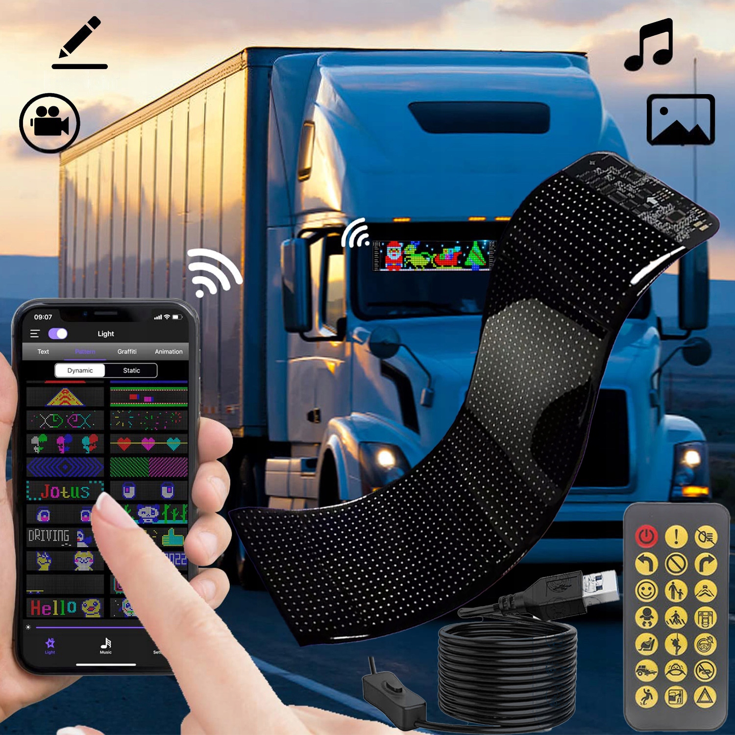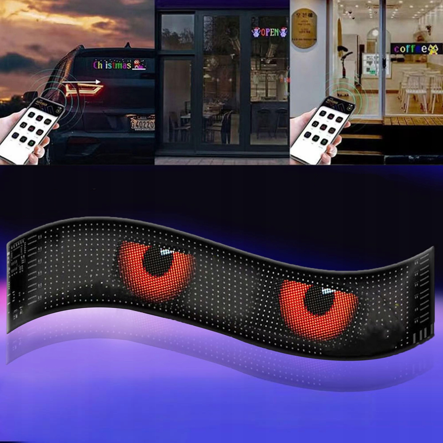 【Гибкий и прочный экран】 Красочный экран с лампой для глаз, мягкий для окон для автомобильных окон может быть согнут, сложен и формируется в соответствии с различными поверхностями. Программируемый гибкий светодиодный дисплей для автомобиля составляет всего 2 см, благодаря тому, что он очень легкий и прост в установке.