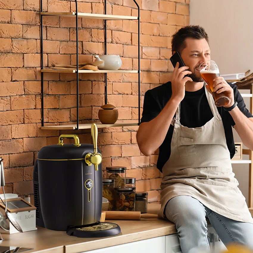 Диспенсер для пива, диспенсер, охладитель, для пивных бочонков 6л, без картриджей CO2, встроенный насос, черный с золотом