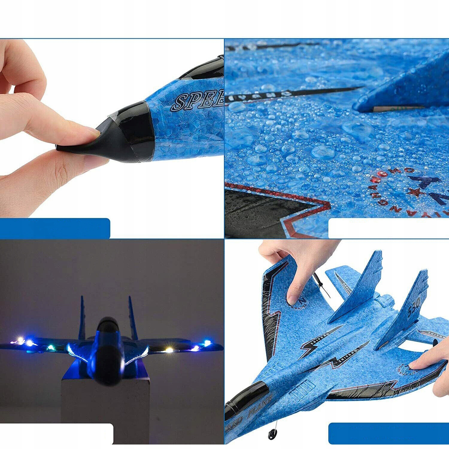 ✈ Хорошая конструкция: Этот удаленный -контролируемый самолет имеет два режима старта, начиная с земли и бросок рук, и этот самолет RC также оснащен ночным светодиодным фонарями, которые делают ночной полет более красивым. Структура силиконовой головки против Collision, идеальная защита самолета.