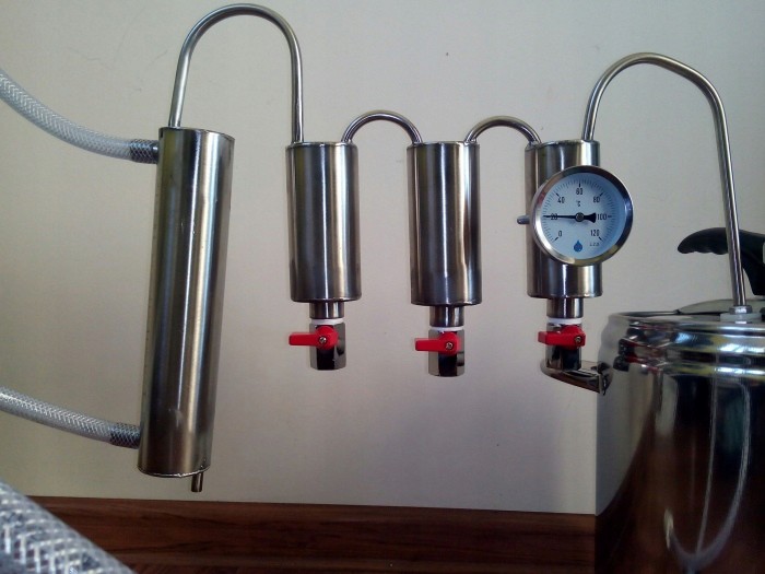 Благодаря установленному термометру намного легче отделять передние и хвостовые хвосты, что отражается на качестве получаемого дистиллята.