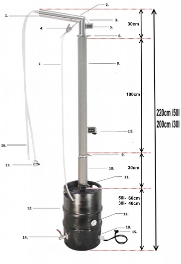 ЭЛЕКТРИЧЕСКИЙ ДИСТИЛЛЯТОР AABRATEK С КОЛОННЫМ ТИПА AABRATEK ВЫСОТА С КЕГОМ 50 Л 220 СМ С БОЧКОЙ 30 Л 200 СМ. ТОЛЬКО У НАС ЕСТЬ КОЛОННА В КОМПЛЕКТЕ С МЕДНЫМ КАТАЛИЗАТОРОМ В ВИДЕ МЕДНЫХ ПРУЖИН 0,5Л И НЕРЖАВЕЮЩЕЙ ЗАПОЛНЕНИЕМ В ВИДЕ 12 НЕРЖАВЕЮЩИХ ПРОВОЛОК, СОЗДАЮЩИХ ТЕОРЕТИЧЕСКИЕ ПЕРЕГОНКАТЕЛЬНЫЕ ПОЛКИ.