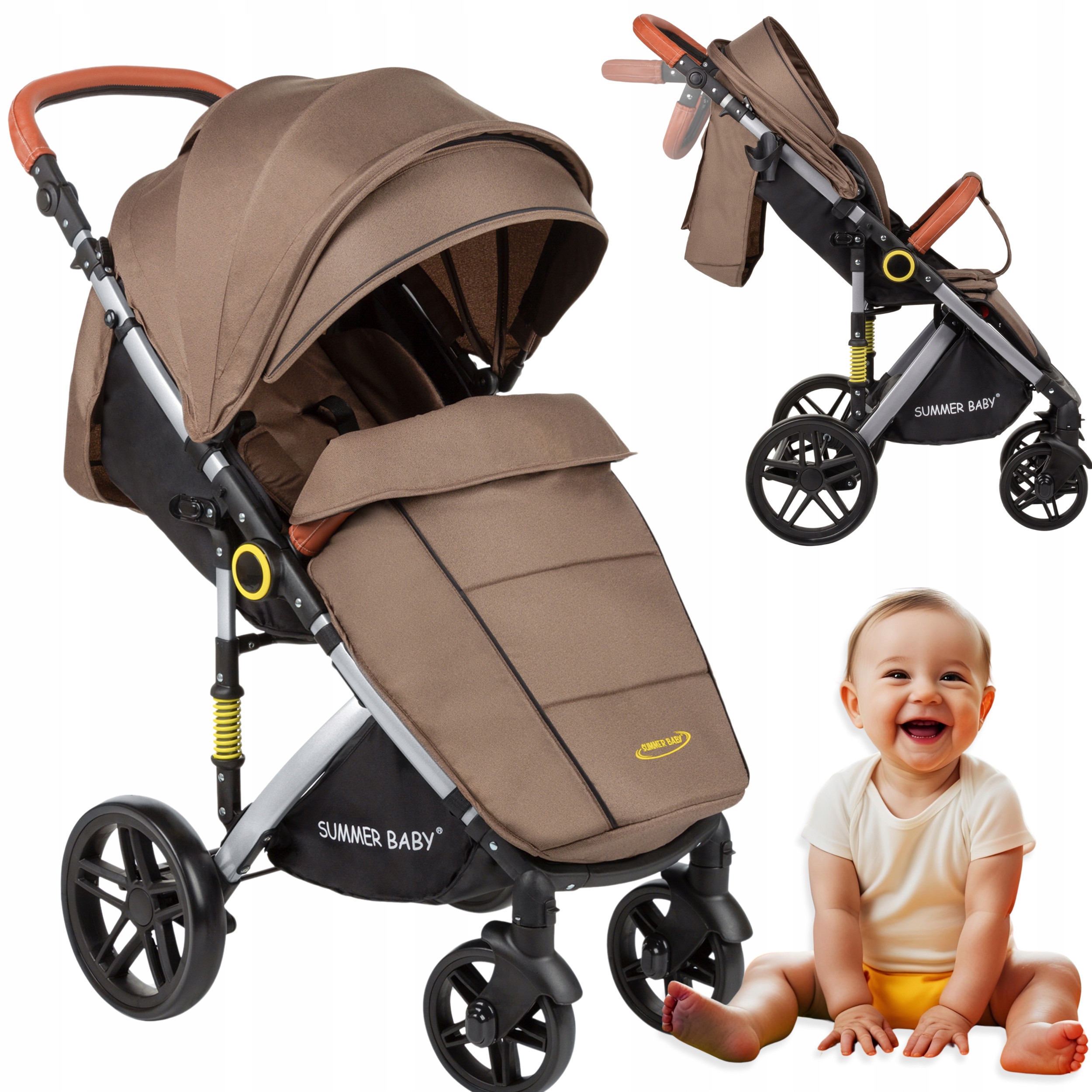 ДИТЯЧА ПРОГУЛЯНКОВА КОЛЯСКА SEMPRE ПРОГУЛЯНКОВА +ПЛІВКА ВІД ДОЩУ КОРИЧНЕВОГО КОЛЬОРУ