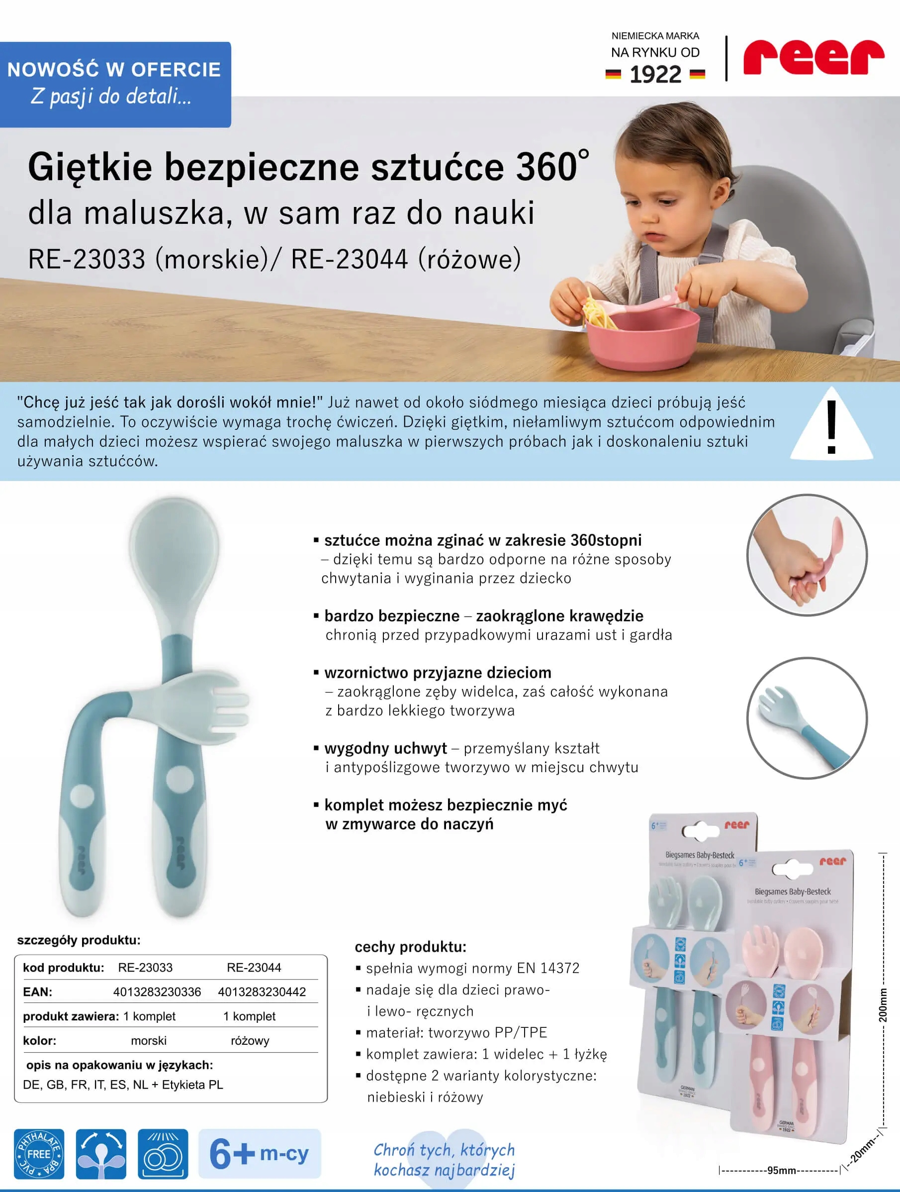 Набор гибких, гибких столовых приборов для детей 6m+ reer