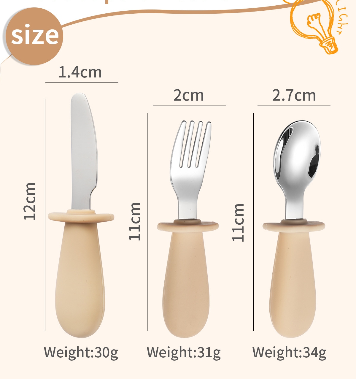 Силиконовые столовые приборы, ложки и вилки с настольными ножами для детей, чтобы изучать независимую еду. тяжелый