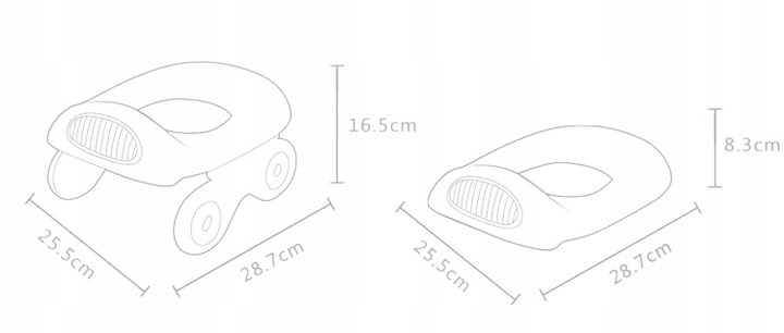 Горшок имеет ножки с противоскользящей системой. Это обеспечивает максимальную гигиену и безопасность ребенка при пользовании туалетом в общественных местах. Инновационная система складывания ножек и легкость делают горшок очень практичным и удобным для транспортировки.