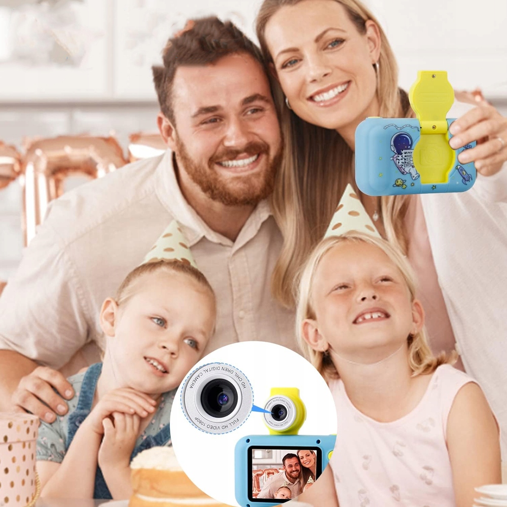 👦👦【ОБЪЕКТИВ, ПОВЕРНУТЫЙ на 180°, БОЛЬШЕ УДОВОЛЬСТВИЯ】Объектив, повернутый на 180°, более гибок и обеспечивает больше возможностей съемки. Просто поверните объектив, и ваш ребенок сможет легко использовать режим селфи.