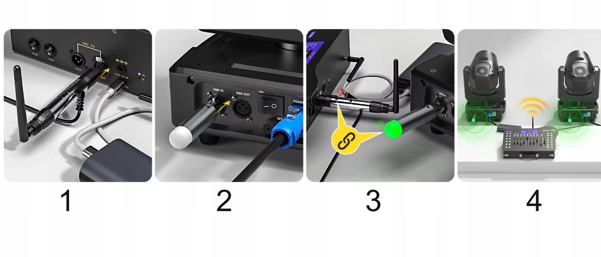 Установите освещение на стадии в режим DMX для их управления; Расстояние управления составляет до 500 метров.