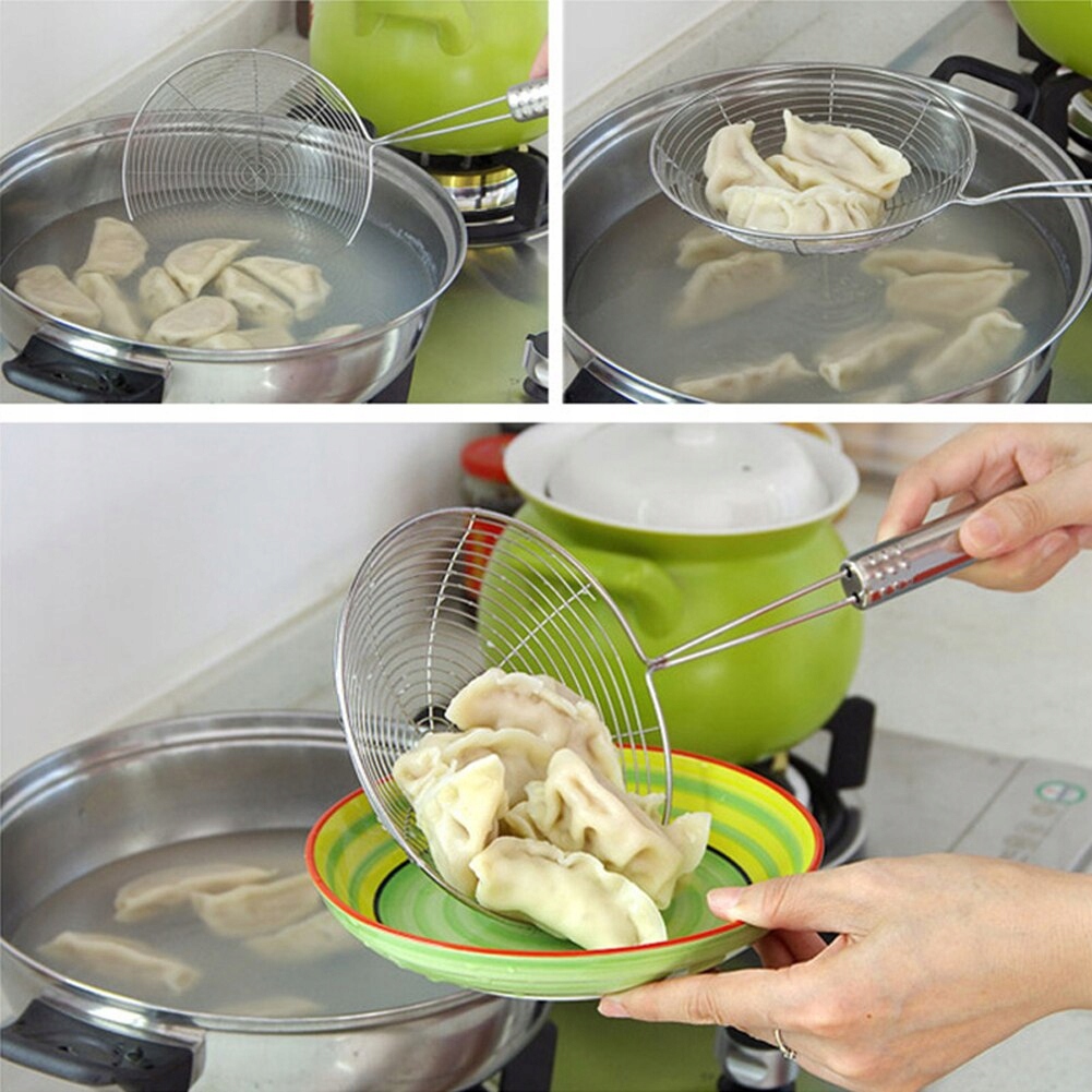 Благодаря ему можно быстро вынуть лапшу из воды, овощи из бульона или картошку фри из кастрюли, полной масла.< /п>