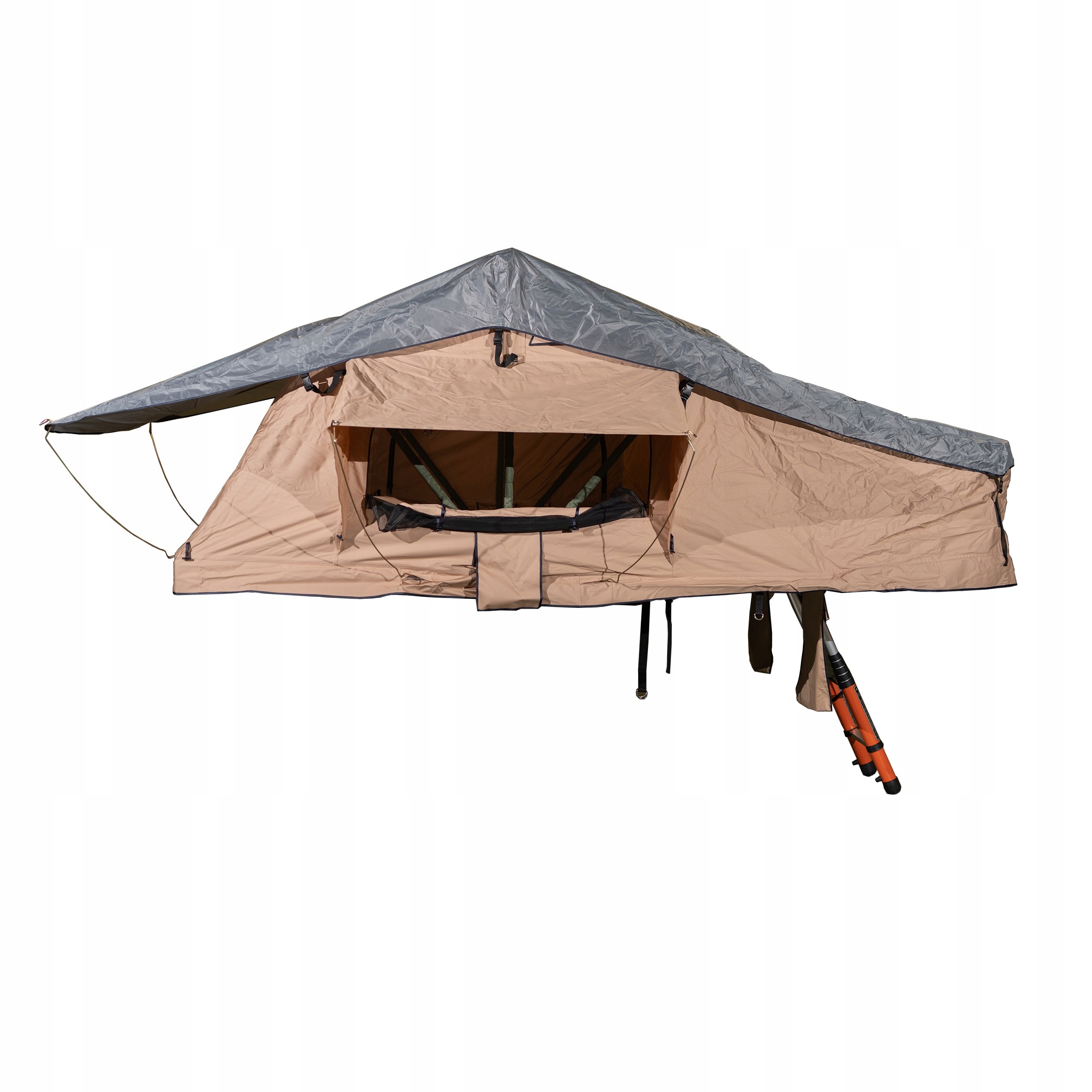 крыша палатка, предназначенная для четырех человек. Удобное и практическое решение для любителей путешествий и кемпинга, которого недостаточно, чтобы беспокоиться в коммерческих лагерях и хотят быть ближе к дикой природе. Эта конкретная модель обеспечивает удобные условия сна и защиту от погодных условий. Изготовленная из прочного водонепроницаемого материала, палатка на крыше идеально защищает от дождя, ветра и других внешних факторов. Вдумчивый дизайн делает палатку светом и простым в транспортировке. После складывания он занимает мало места, которое облегчает хранение и установку на крыше автомобиля. Интерьер палатки просторно продуманно и эргономично. Разработано так, чтобы это было удобное место для сна для четырех до пяти человек. Оснащенный удобным матрасом толщиной 4 см, палатка на крыше гарантирует хороший ночной сон даже во время долгих поездок. Он также имеет окна и вентиляция, которые обеспечивают адекватный воздушный поток и позволяют вам наслаждаться свежим воздухом благодаря комарам во всех отверстиях, мы можем спать мирно и не беспокоиться о насекомых. Установка палатки на крыше проста, а набор содержит необходимые инструменты сборки. Автомобиль должен быть оборудован рельсами или поперечными балками, к которым мы облажали палатку. Материалы, используемые для производства палатки, представляют собой алюминиевый сплав высочайшего качества 6063-75 вместе с Oxford 280G Polyester Material-Cotton создает конструкции, которые служат годами