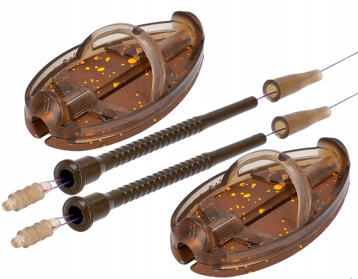 Замена комплекта еще никогда не была такой простой и быстрой. Использование таких патентов, как конический штифт или разъем для быстрой смены поводков, в сочетании с корзиной типа DOUGLAS, открывает новую эру среди корзин, доступных на рынке. Подгонка веса корзины под преобладающие условия на месте рыбалки больше не составит никаких проблем. Благодаря встроенной системе смены корзин это делается без необходимости демонтажа строп, а быстросменный разъем позволяет сменить поводок всего за несколько мгновений.