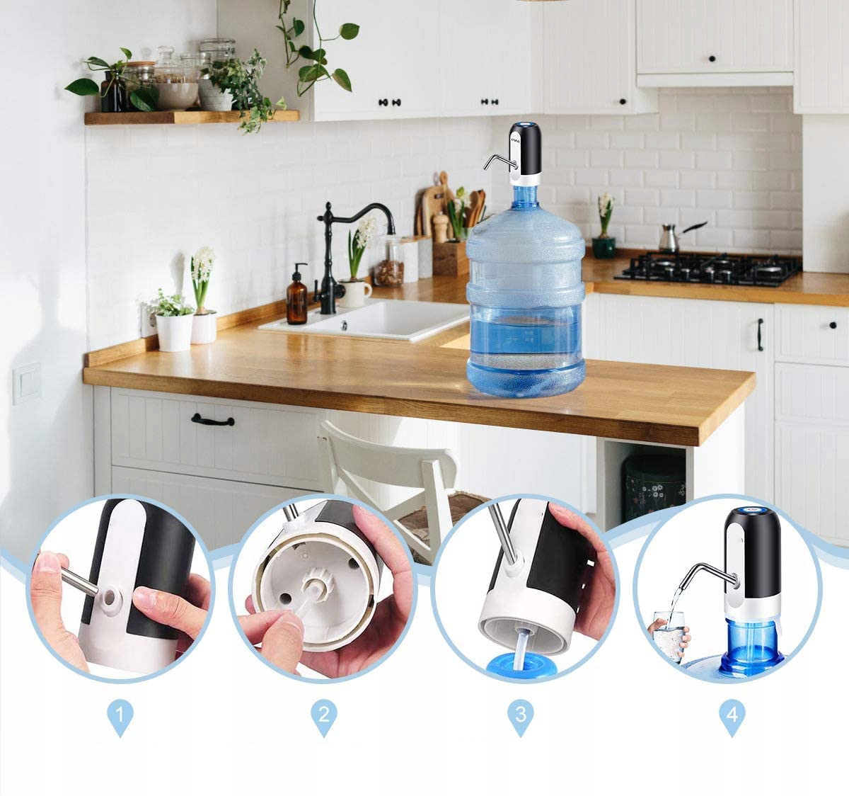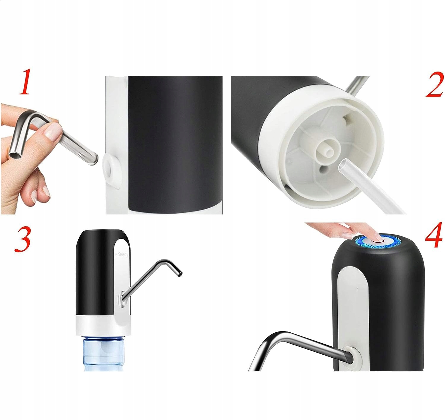 - Диспенсер для бутылок из пищевого материала:нержавеющая сталь 304 и безопасная силиконовая трубка для воды.