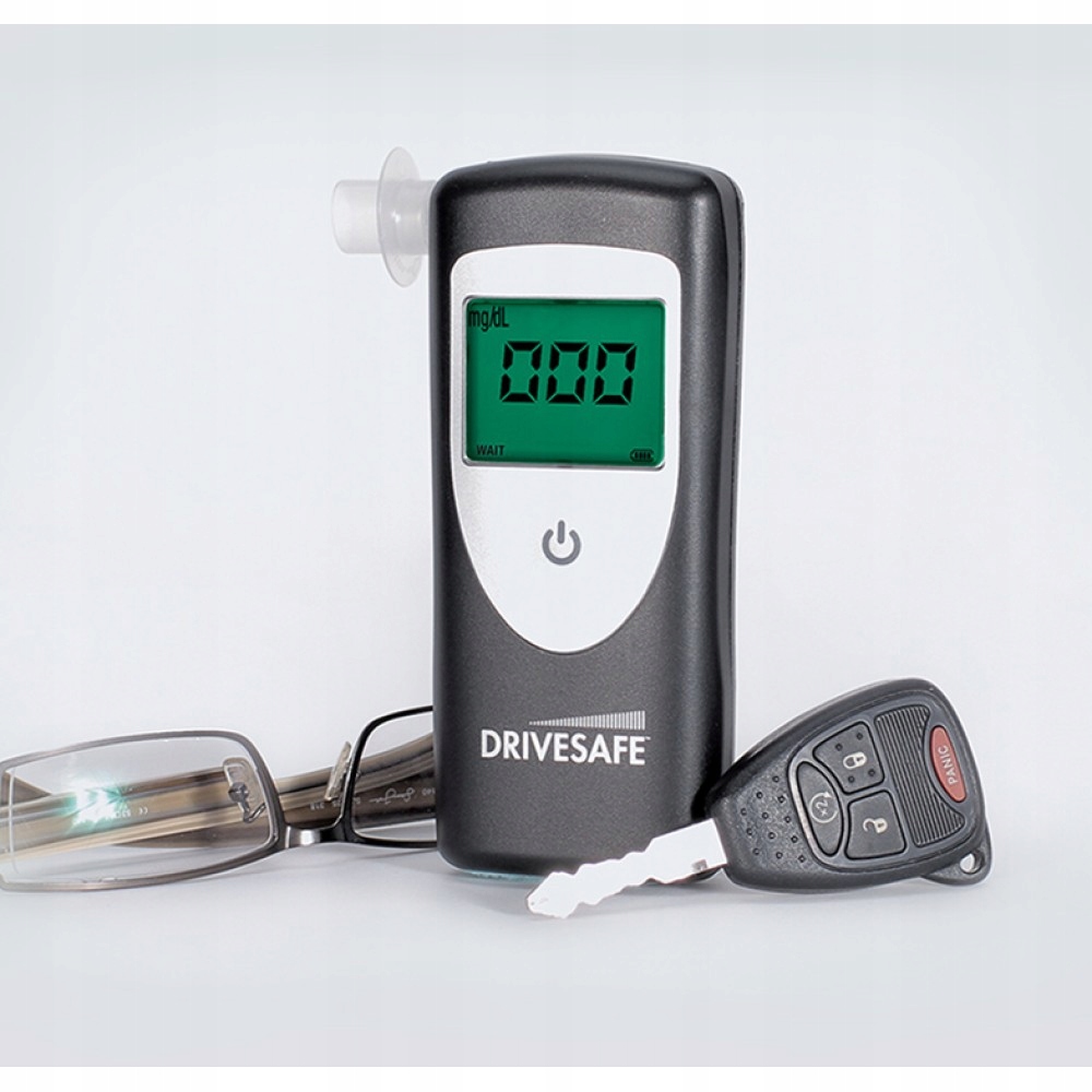 atekalyser Drivesafe ™ Exec b> -анализатор содержания алкоголя с высоким классом в дыхании. У него есть электрохимический датчик, который реагирует только на этиловый спирт, благодаря которому он точно определяет содержание спирта в загруженном измерении.