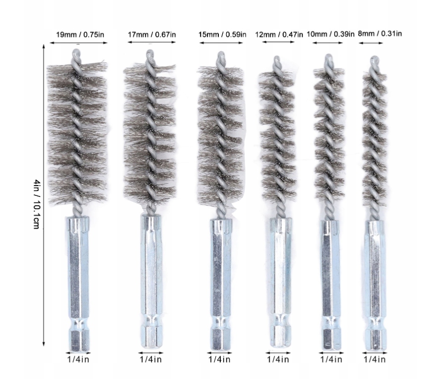 каждую щетку длиной 10 см, а шестиугольная ручка 1/4 дюйма, прикрепление к любому буровому или матричному измельчению (не входит в комплект)