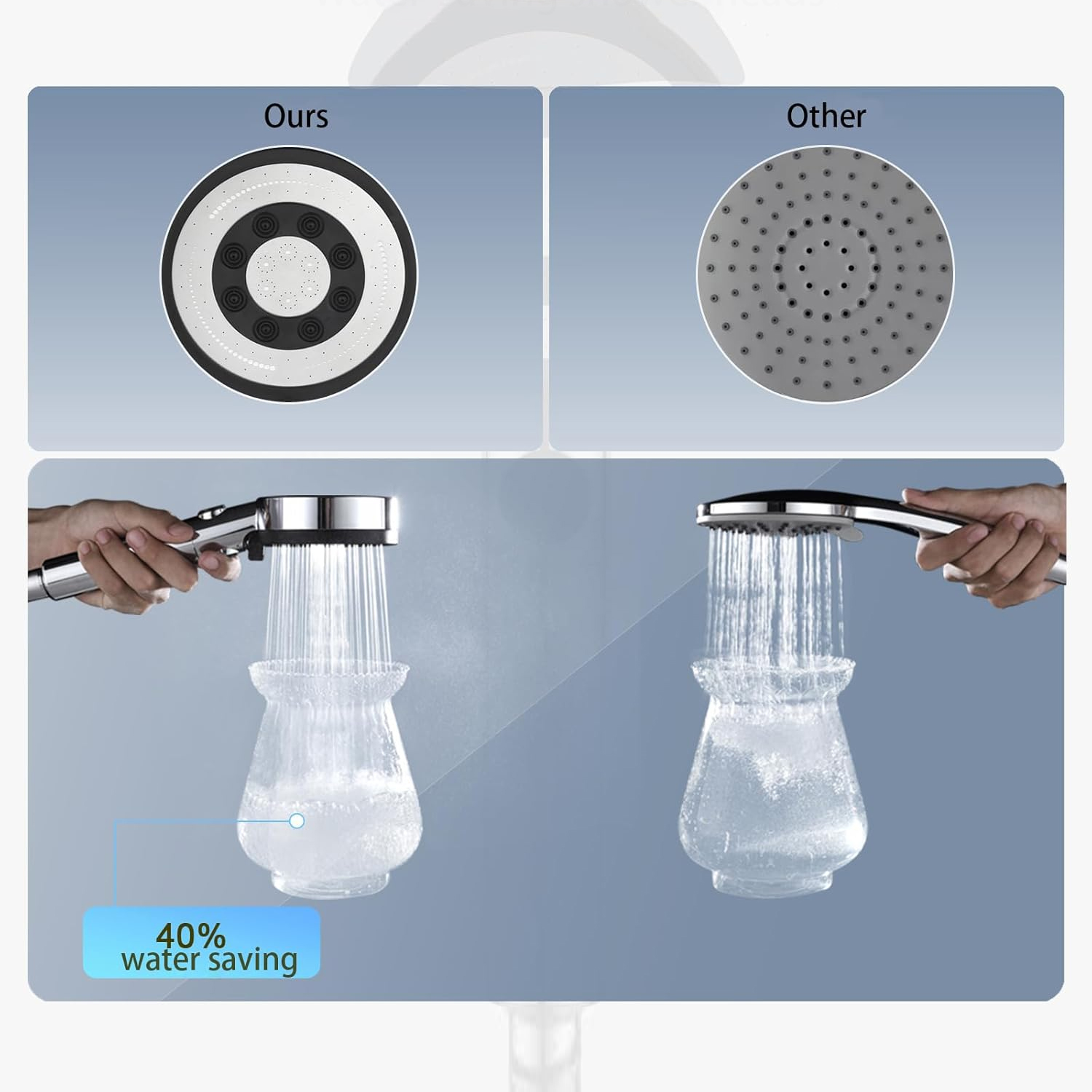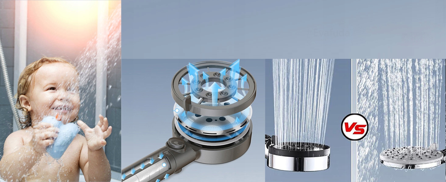 🧼 Наголочная головка для душа нафуль легко чистить благодаря строительству панели панели из нержавеющей стали 304 и технологии турбонаддува давления воздуха и предотвращает камень и эмболию. Благодаря прочной, плотной и нежной душевой головке, вы можете насладиться отличными моментами расслабления. Это увеличивает давление воды и, таким образом, улучшает комфорт ванны. Для деликатного душа, массажа головы, плавания детей и домашних животных, а также очистки ванны