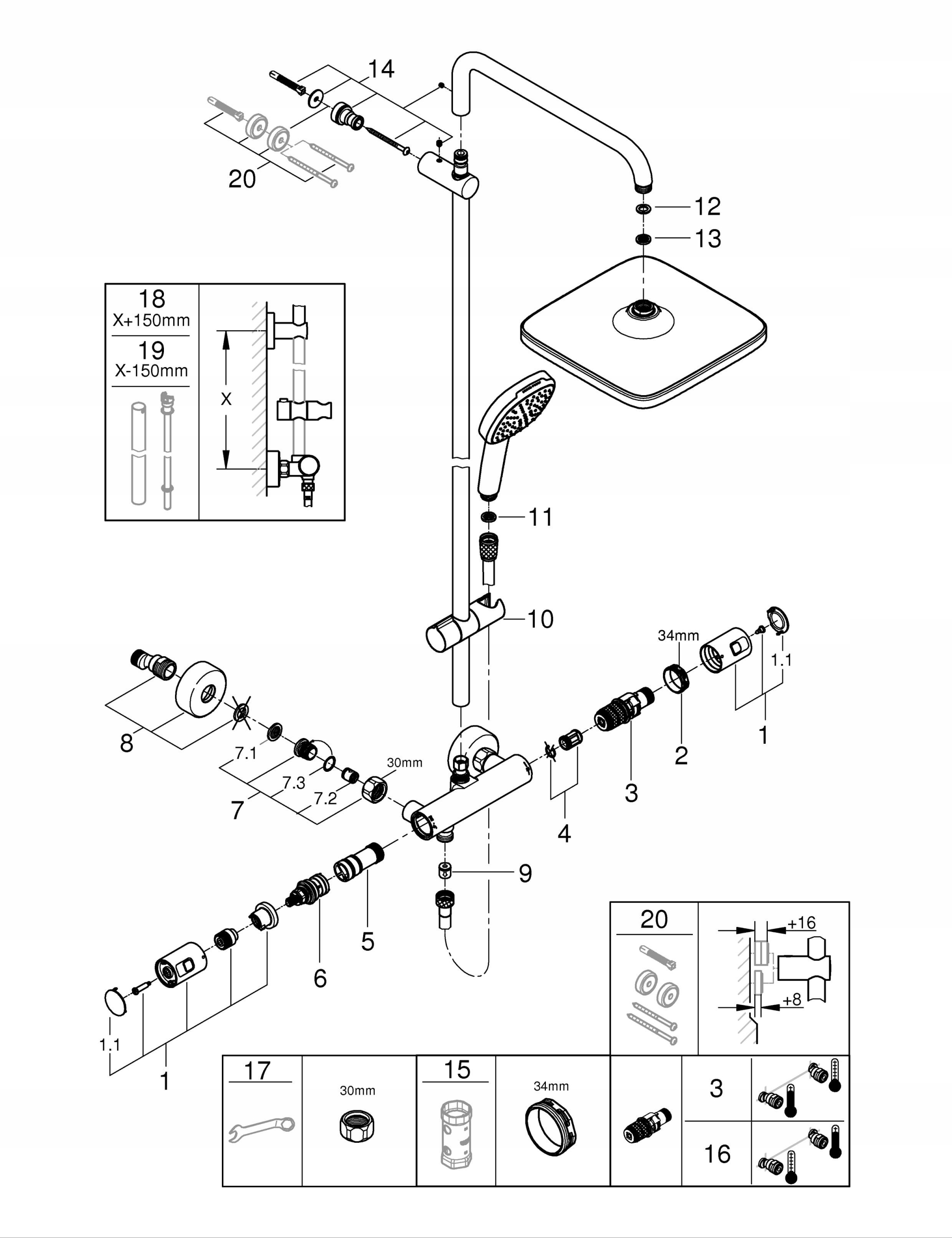 Душова система GROHE Vitalio Comfort System 250 з термостатом