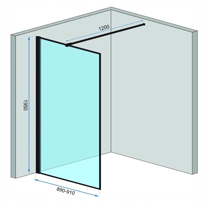 ДУШОВА СТІНА ЧОРНА РАМА СКЛО BLER 90 REA