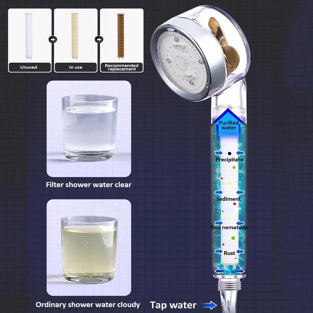 ➯ Эта LED-душевая насадка содержит высококачественный фильтр. >эффективно уменьшают остатки загрязнителей, тяжелых металлов и хлора в воде, делая кожу более гладкой и здоровой .