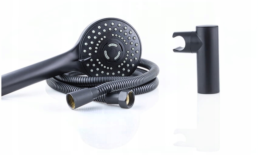 Душевой набор, шланг, трубка, черный матовый держатель