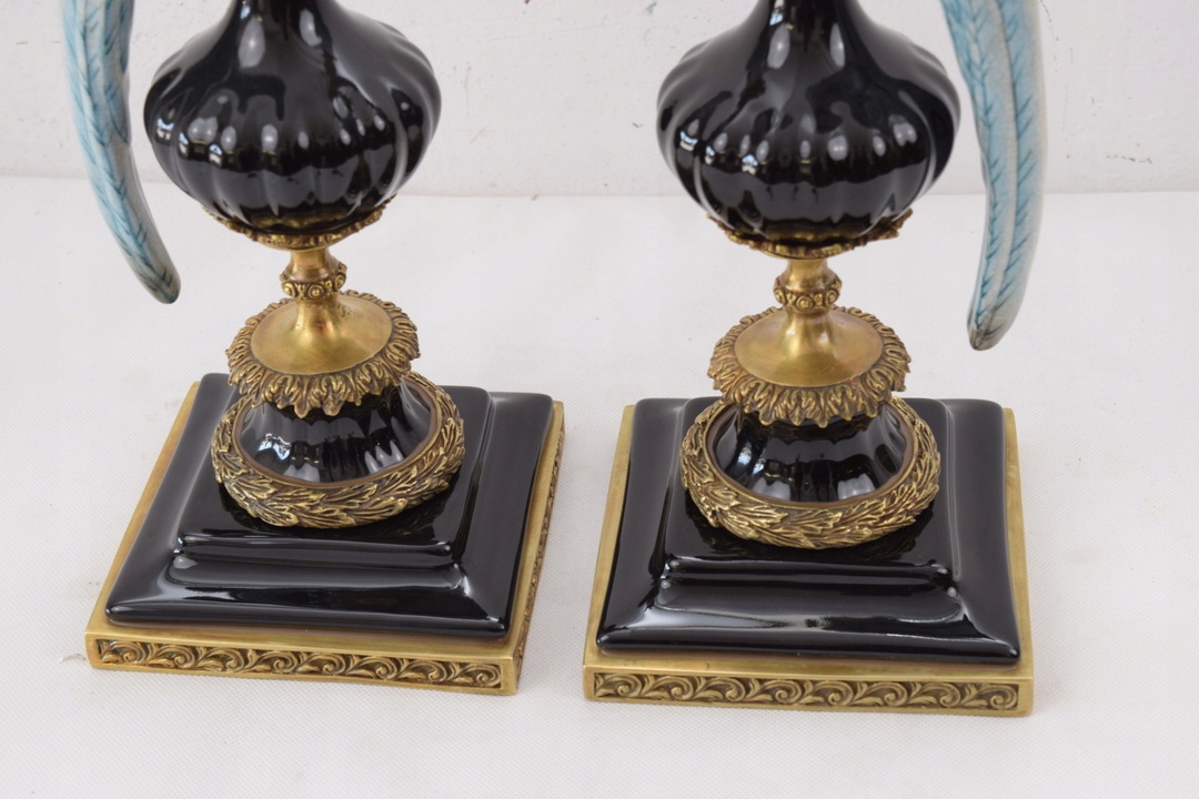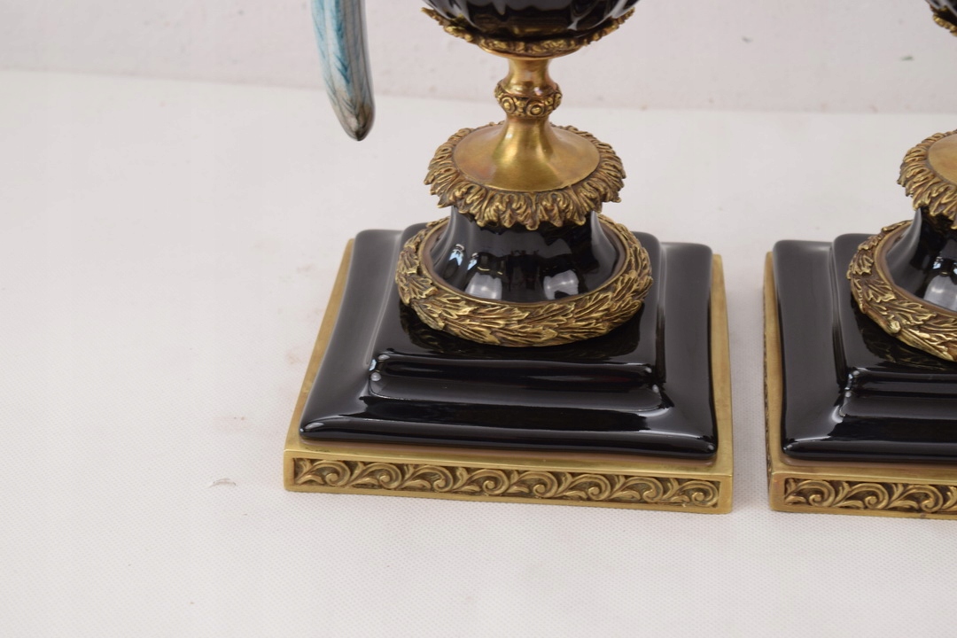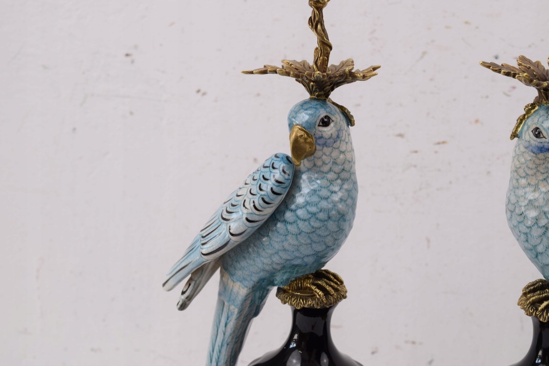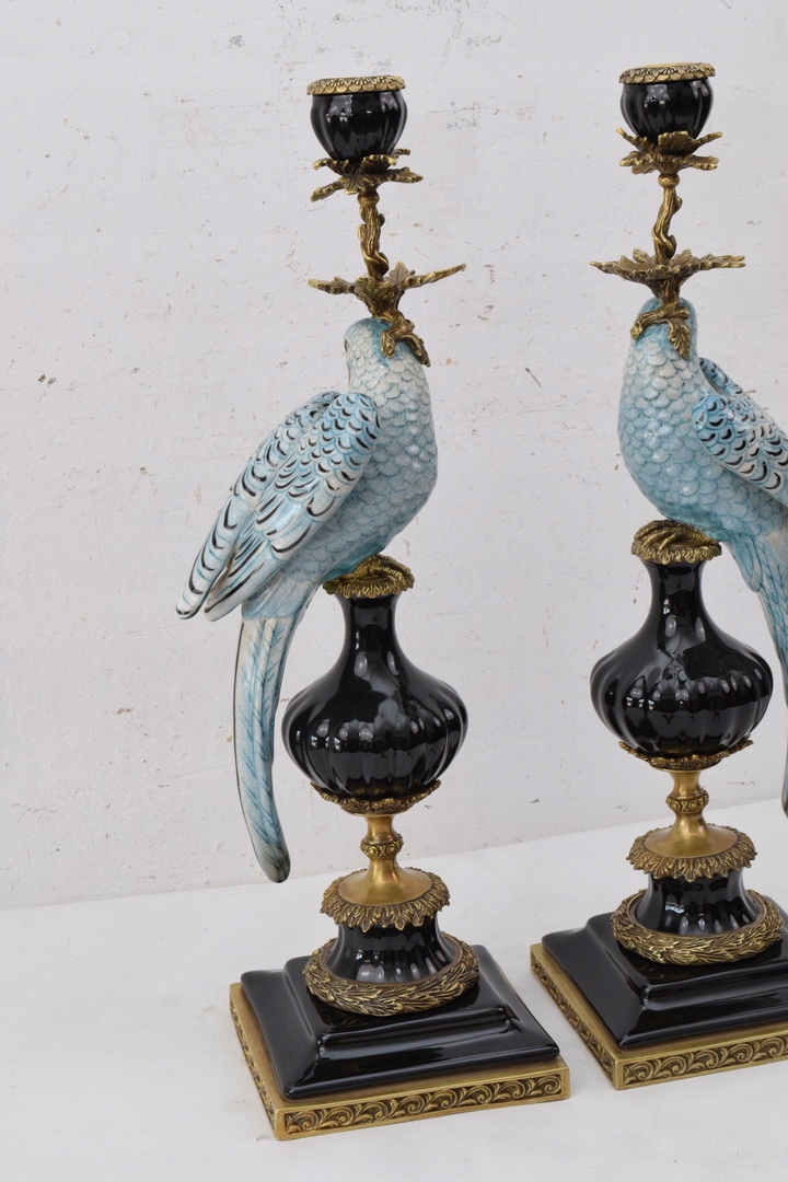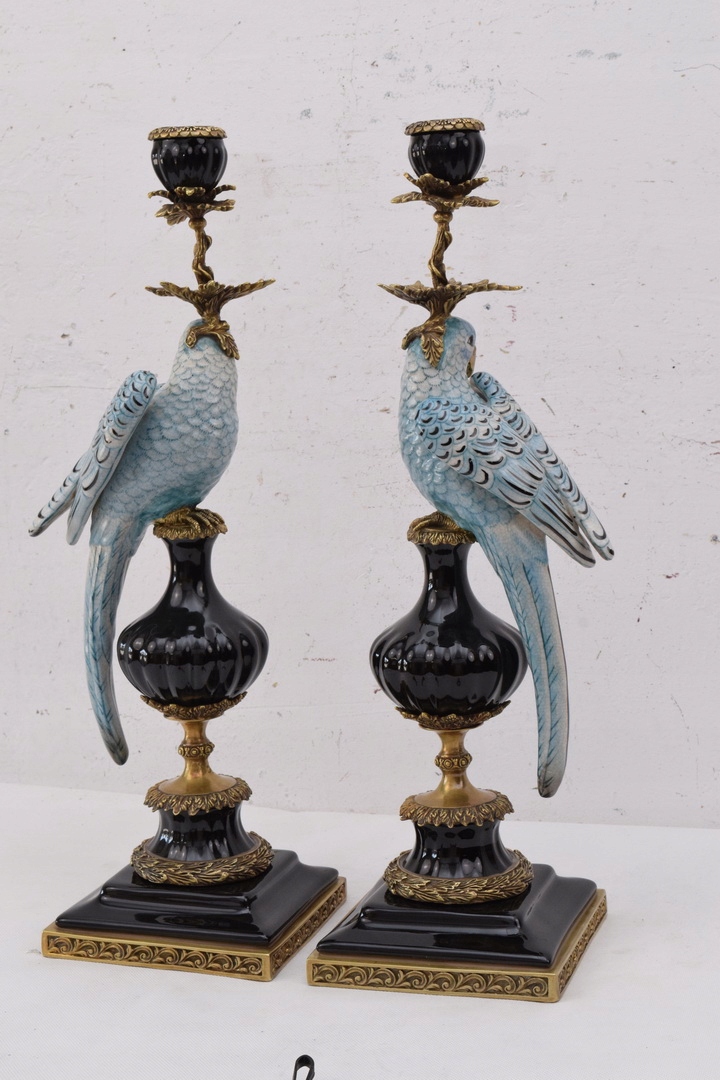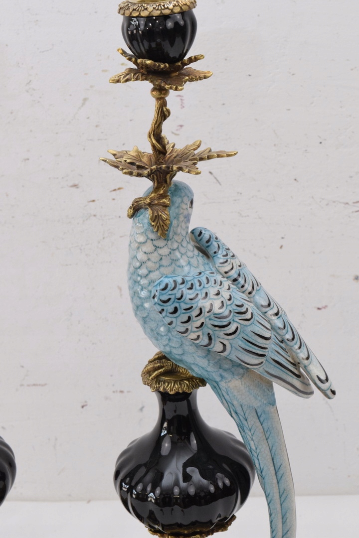 ДВА СВІЧНИКИ - ПАПУГИ блакитний ФАРФОР + бронза