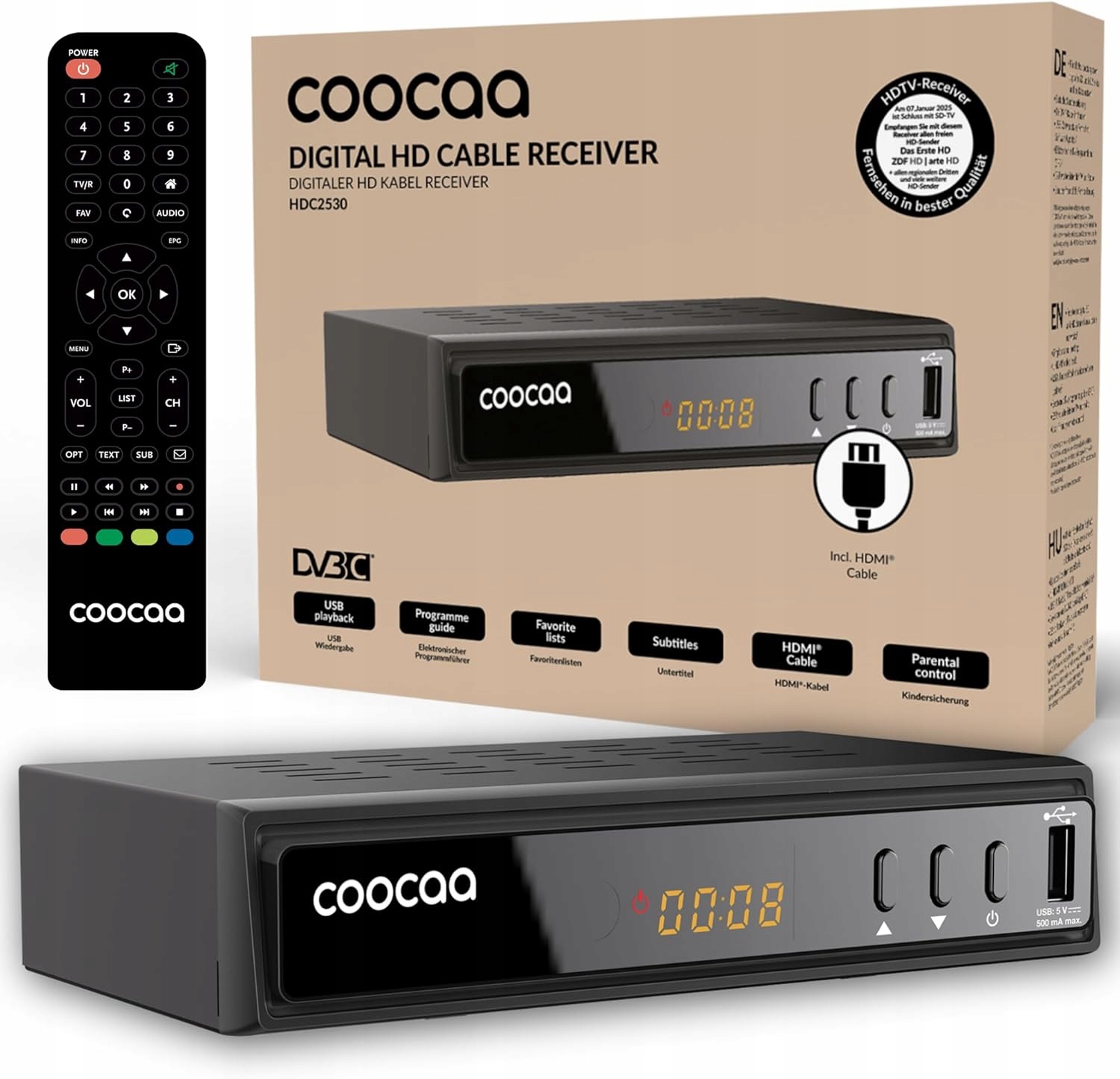 ⭐cocaa HDC2530 DVB-C Digital HD-приемник, hd⭐ ТВ-приемник телевизора. Широкий ассортимент телевизионных каналов с высоким разрешением. Благодаря простоте функций обслуживания и мультимедиа, это становится неотъемлемой частью домашних развлечений. Он предлагает гибкость и комфорт использования кабельного телевидения в современном стиле. ✅ Функции продукта