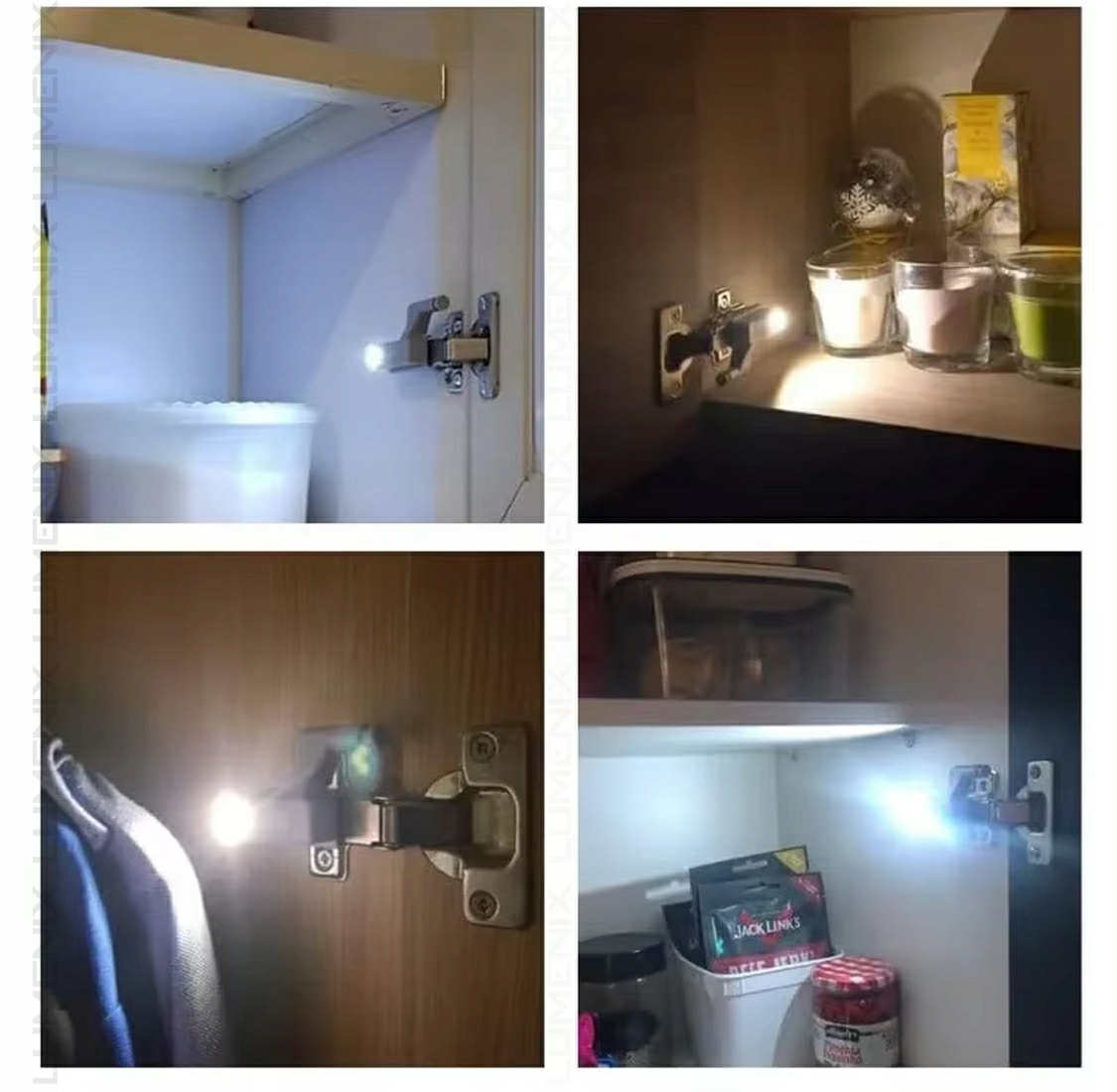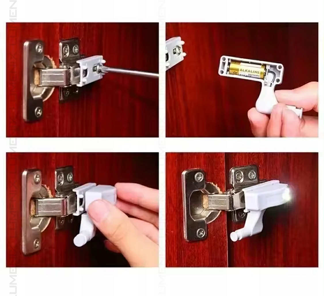 Лампа установлена непосредственно к шарнирной двери шкафа. После открытия: