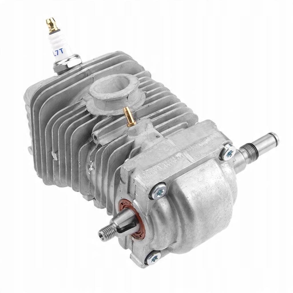 Двигатель включает в себя: 1 поршень цилиндра + 1 коленчатый вал + 1 поддон двигателя + 4 болта крепления цилиндра + 1 свеча зажигания + 2 сальника + 2 кривошипных подшипника + 1 подшипник поршневого пальца