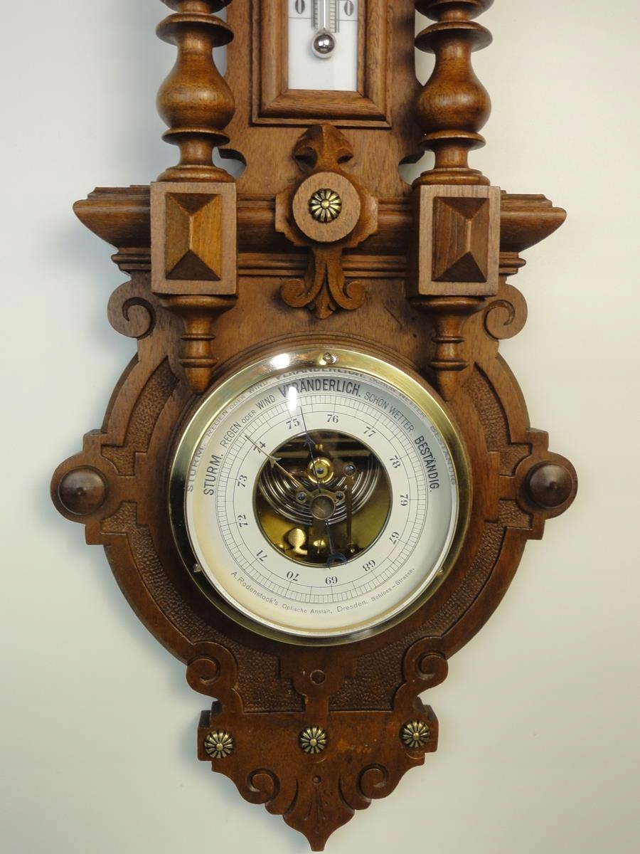 *эклектичный резной барометр с термометром, изготовленный в Германии на рубеже XIX и XX веков,