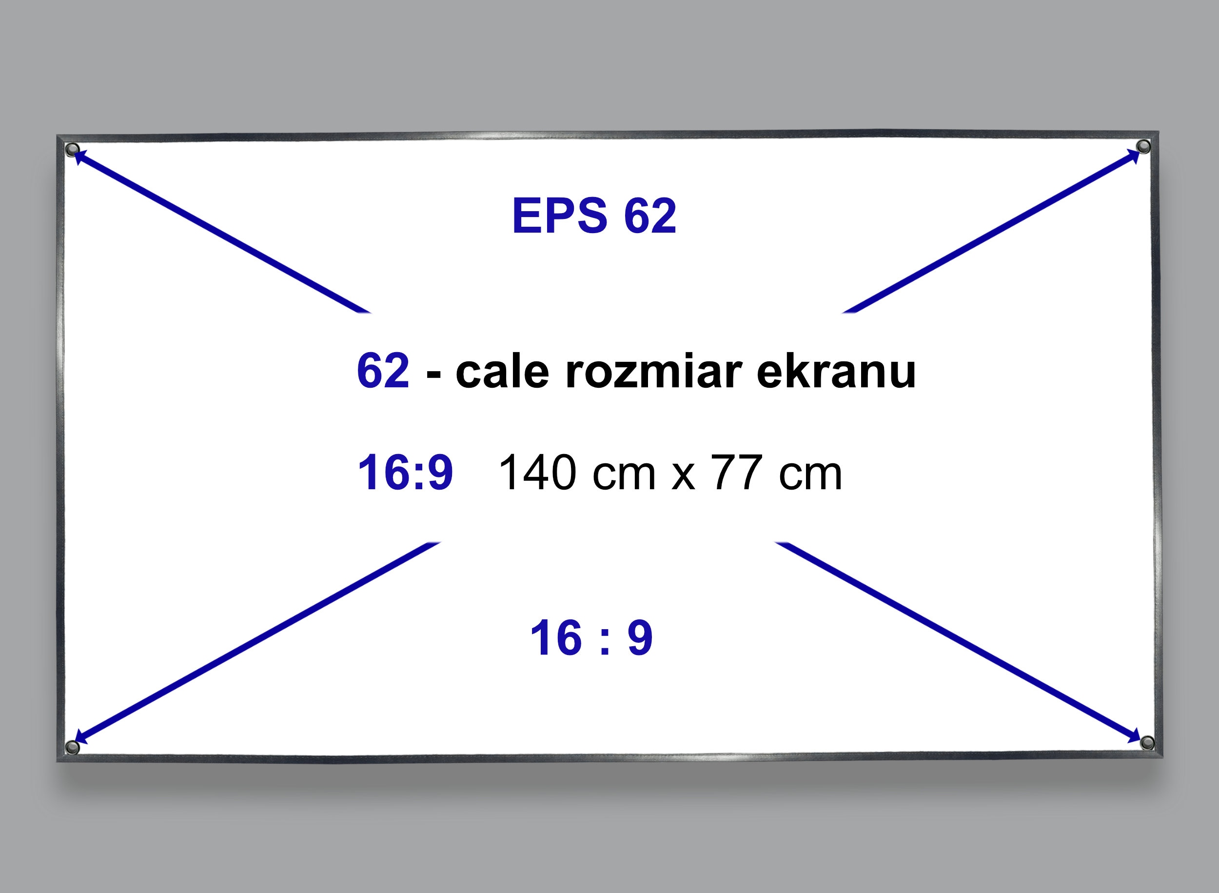Экран производится в Польше из высококачественной плотной полиэфирной ткани с весом 200 г/м2. Верхний слой экрана был покрыт устойчивым к пятнам вещества, обеспечивающего высокий контраст, яркость и угол зрения. Мы предлагаем шесть размеров такого типа экрана; 125 дюймов, 105 дюймов, 102 дюйма, 75 дюймов, 72 дюйма и 62 дюйма. На этом аукционе экран имеет диагональ 62 дюйма (размер изображения 140 см х 77 см).