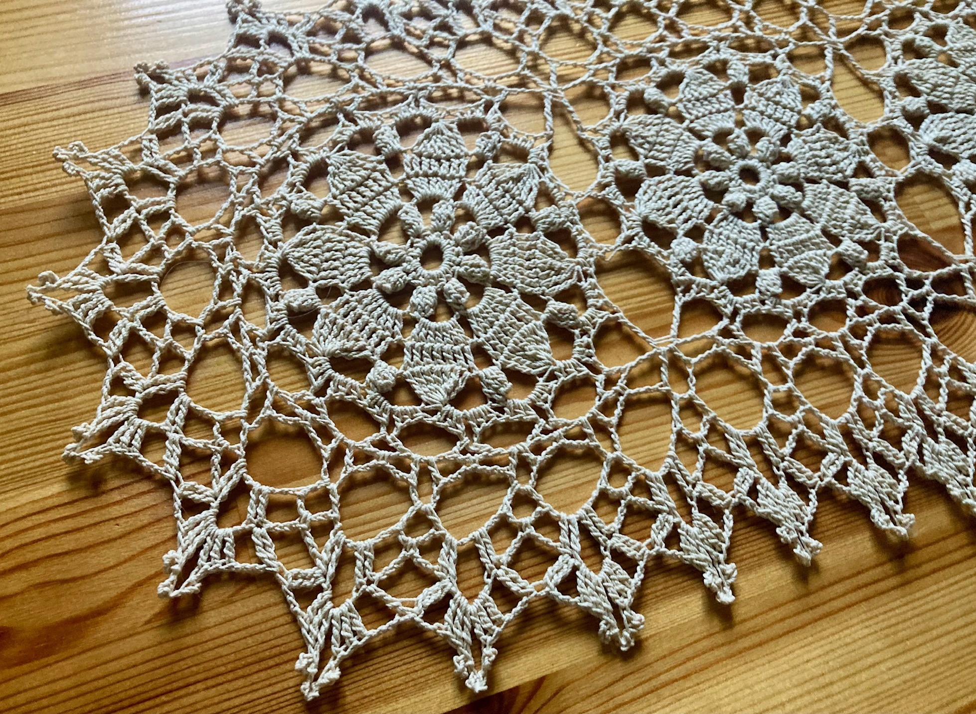 Elegancki Koronkowy Bieżnik Jasny Beż Handmade