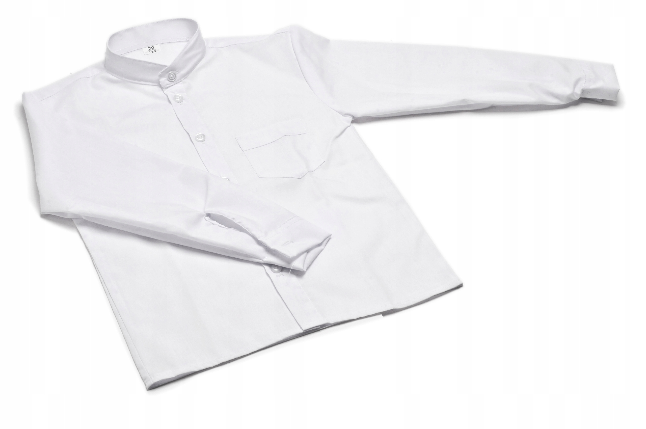 ЭЛЕГАНТНАЯ БЕЛАЯ РУБАШКА ДЛЯ МАЛЬЧИКОВ С ВОРОТНИКОМ СТОЙКОЙ И ДЛИННЫМИ РУКАВАМИ 122 СМ