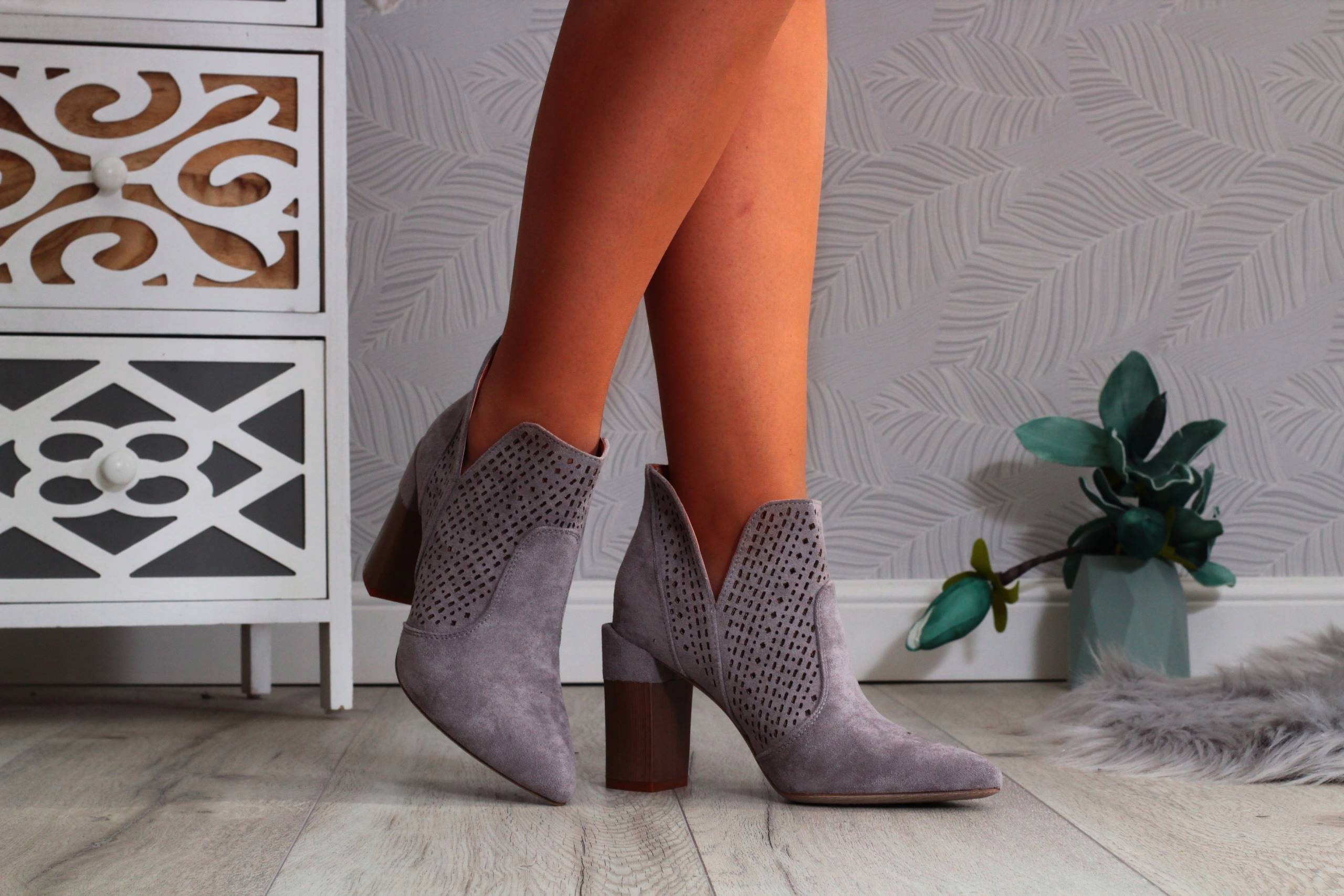 Openwork, элегантные женские ботинки от замши на сером посте. Легко положить на него. Сделано из материалов хорошего качества. Идеально подходит для весны или осени 🍂 широкий каблук обеспечивает стабильность и комфорт использования. Модный сокращение дополнит многие стили, а стильный вырез даст им стиль. Spitz