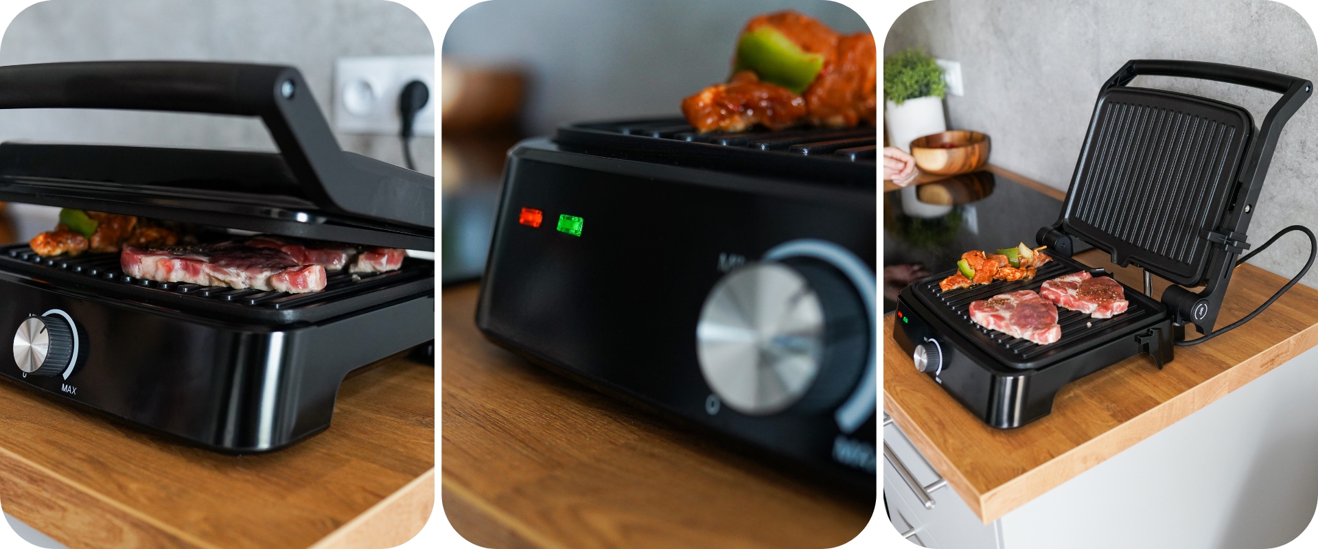 Электрический гриль b> - это устройство, которое изменит ваш подход к приготовлению. благодаря возможности гриля на двух или одной тарелке, настройки высоты крышки и отсутствия огня и дыма, вы можете наслаждаться вкусными блюдами в течение года. идеально подходит для приготовления разнообразных блюд, от мяса до овощей, в комфорте вашей собственной кухни. p> · Загрузите электронную книгу «Искусство гриля дома - рецепты и советы» · h1>