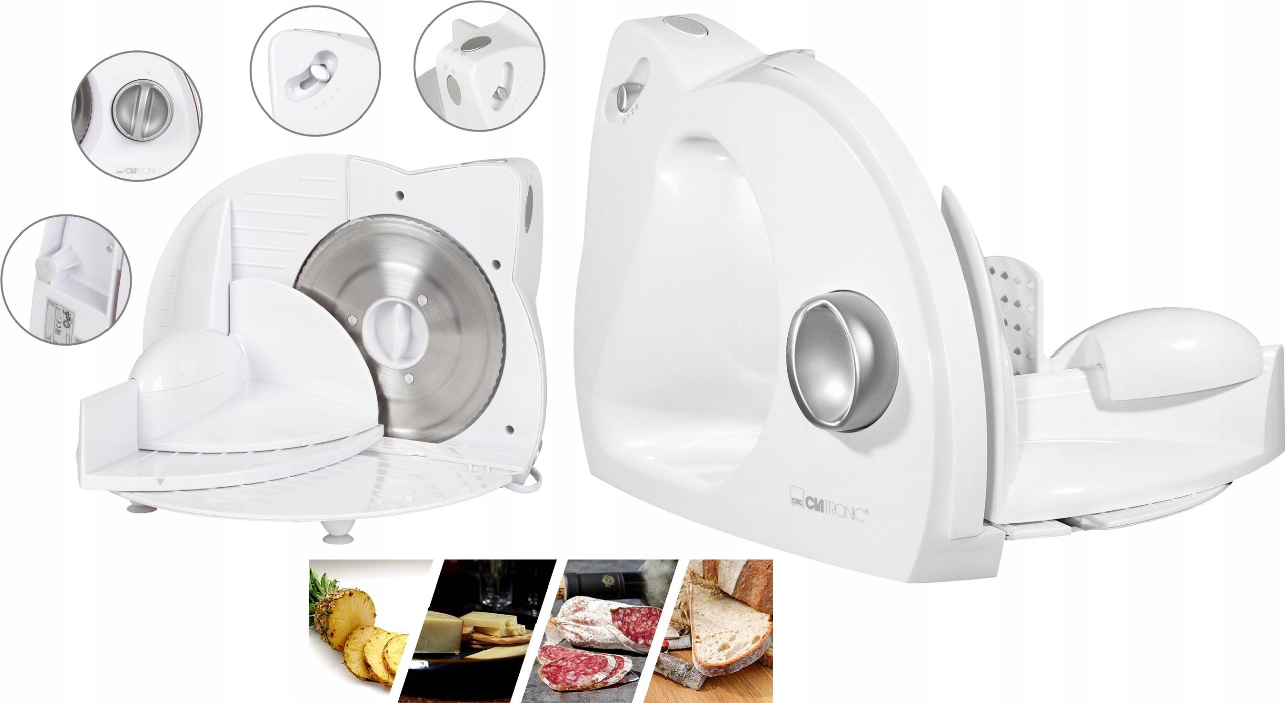 Домашний слайсер – очень практичный прибор. Благодаря этому вы сможете точно контролировать, что вы едите, покупая продукты целиком. Продукты, хранящиеся таким образом, дольше остаются свежими и вкусными. Это не лишит вас удовольствия попробовать тонкие ломтики мясного ассорти или пикантного сыра. Слайсер также нарежет ломтиками хлеб, крупные овощи и фрукты. Вы можете регулировать толщину ломтиков по вашему желанию в пределах от 1 до 15 мм. Точность резки обеспечивается эффективным двигателем с максимальной мощностью 180 В. Большое вращающееся лезвие из нержавеющей стали, приводящее в движение, готово. с зубами. Лезвие съемное, что упрощает его очистку.