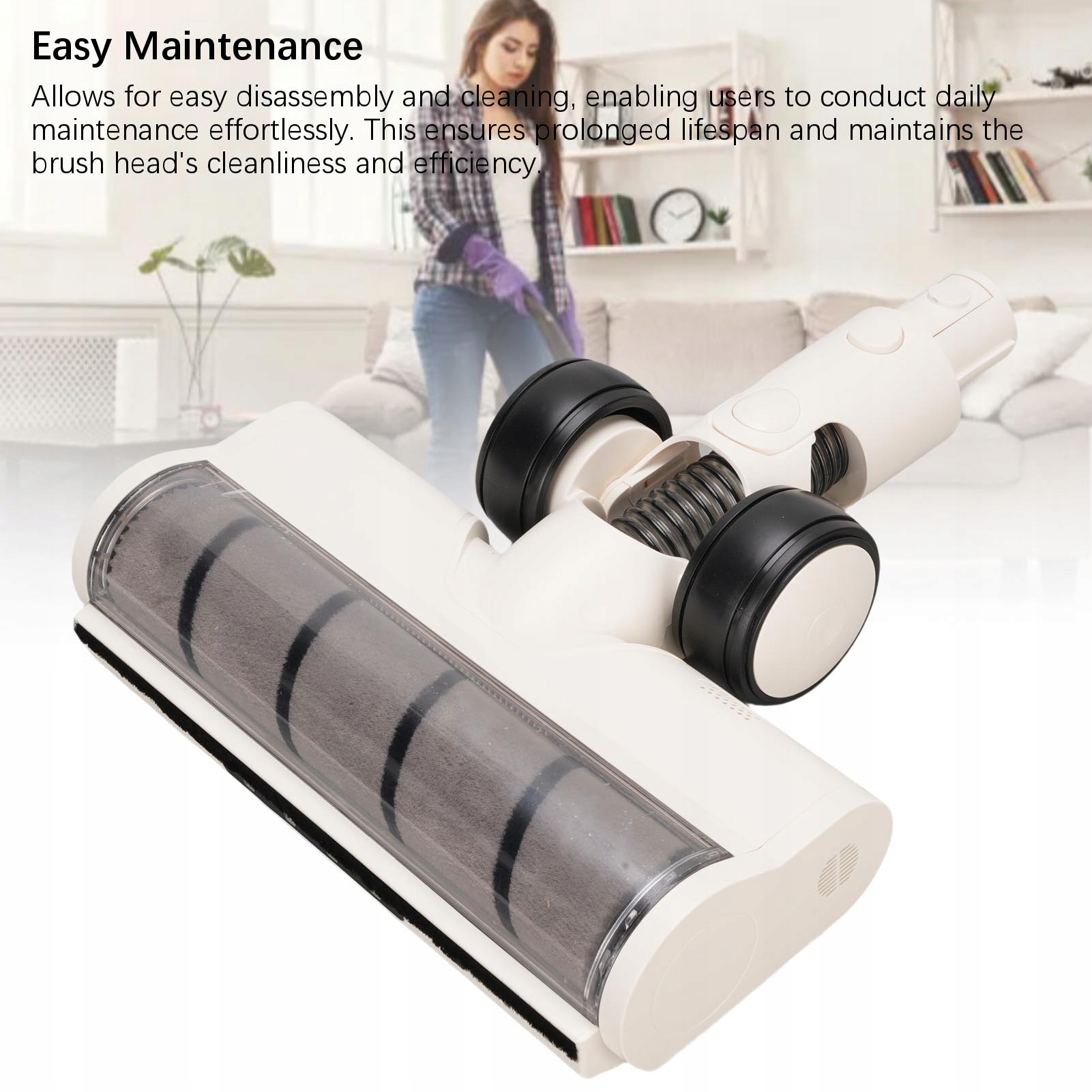 2. Мощная эффективность очистки: оснащенная с высокой производительностью, электрическая чистящая головка производит сильное всасывание и вращение волос для проникновения в пола, эффективно удаляя пыль, волосы домашних животных и упрямую грязь.