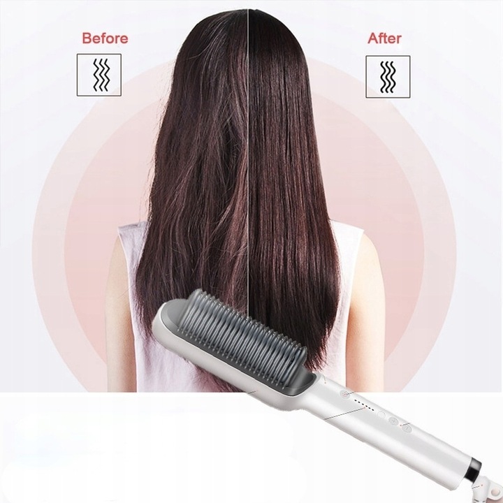 Наша щетка оснащена пластинами, покрытыми специальным керамическим покрытием, которые прекрасно выпрямляют волосы, оставляя их гладкий и блестящий надолго.