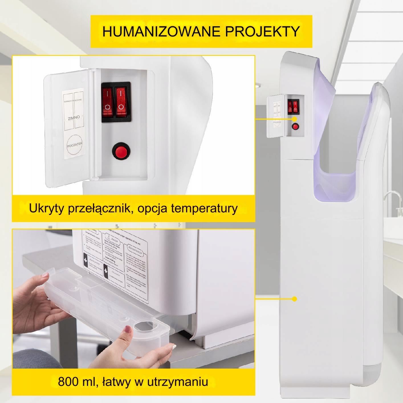 Современная электрическая сушилка для рук с 2000 Вт, оснащенную системой быстрой сушилки и фильтрацией HEPA. Благодаря двигателю скорости 23000 об/мин, сушка рук длится только 8-10 секунд . Бесконтактная работа, твердое корпус с ABS и возможность установить температуру воздуха, что делает его идеальным решением для общественных и коммерческих мест.