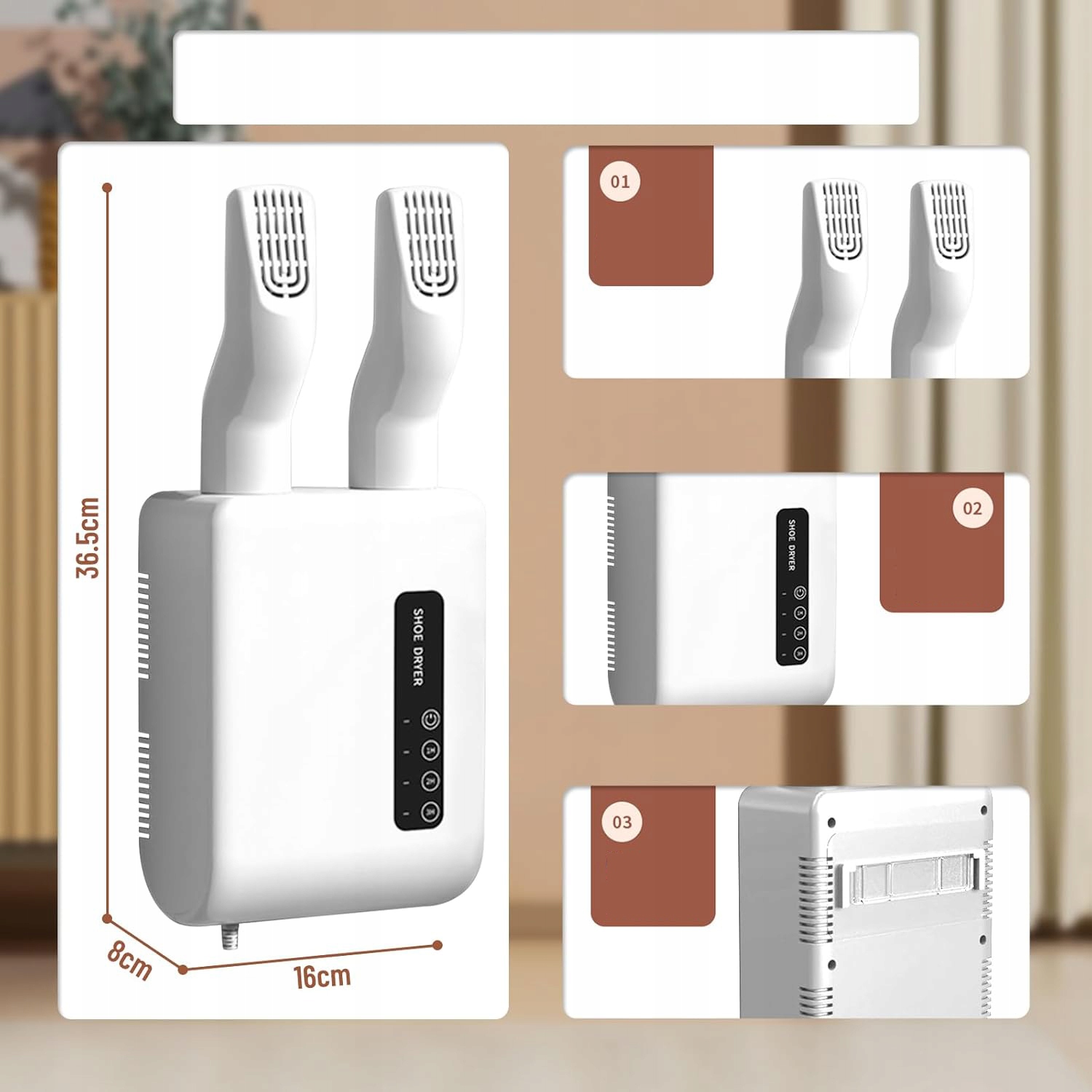 👟 【【 Электрическая обувь для обуви, установленной на стене】 Наша обувь имеет уникальную стенку, обеспечивая необычную гибкость. Вы можете положить его на пол или установить на стену, по своему усмотрению. Эта конструкция не только позволяет полностью использовать ограниченную поверхность пола, но также является очень удобным решением для сушки различных объектов. Наши обувные сушилки работают невероятно тихо, чтобы убедиться, что они будут выполнять свою работу, не нарушая мир окружения. Используется сложный метод нагрева плавающего воздуха, благодаря тому, что обувь высохнет за короткое время, продолжительно 1-2 часа. Это не только высыхает обувь, но и сохраняет их сухими и сохраняет теплую обстановку внутри. Более того, бактерии, скрывающиеся в вашей ботине, могут быть активно атакованы и уничтожены. Благодаря трем удобным режимам синхронизации 1/2/3H вы можете без особых усилий адаптироваться к конкретным требованиям различных типов обуви. Он устраняет все потенциальные мертвые зоны в процессе сушки, обеспечивая полную циркуляцию теплого воздуха от пальцев ног до пятки. к перчаткам, шляпам, носкам, шлемам и беретам