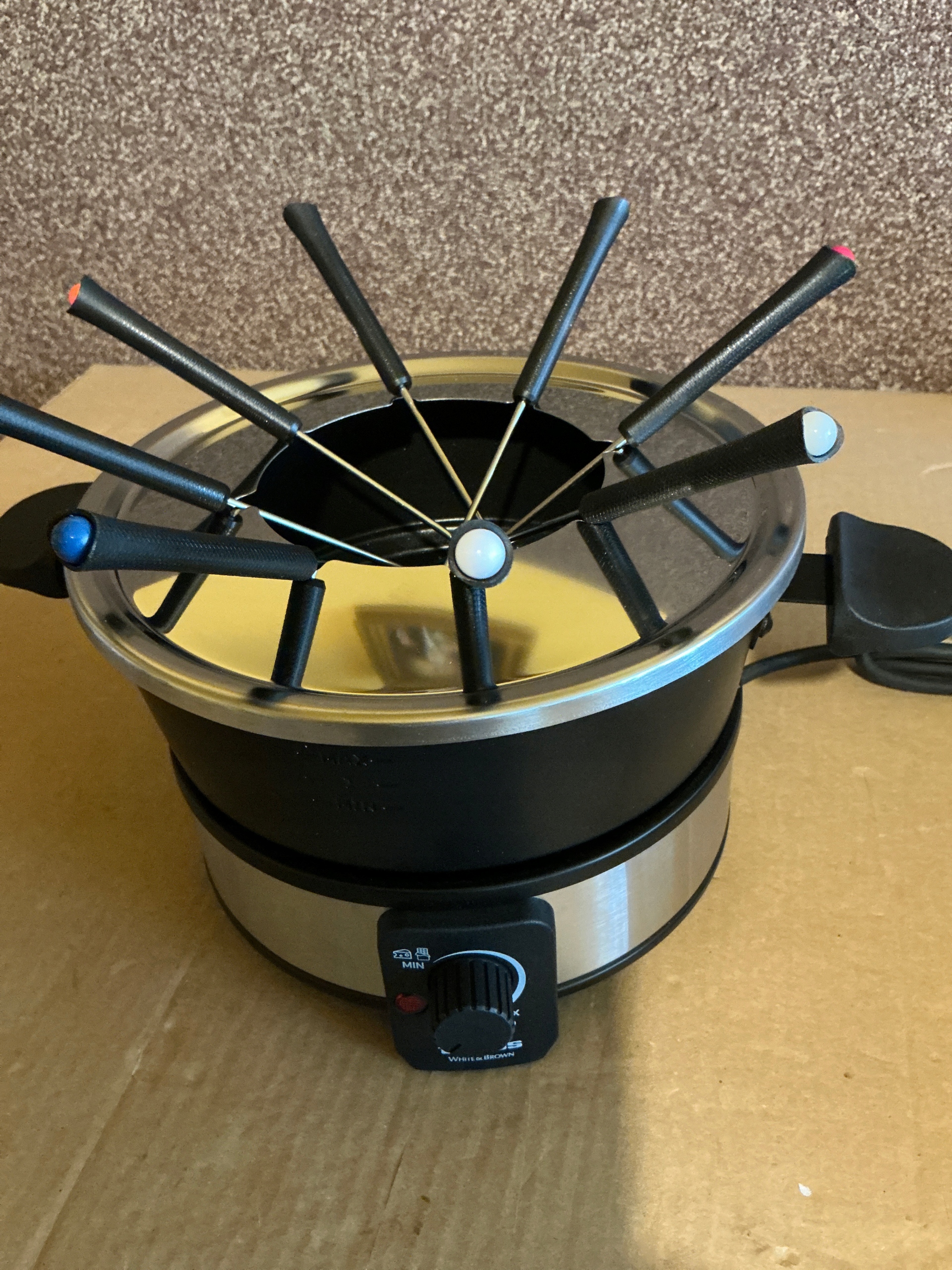 Мощность 1000 Вт приготовит вашу еду готовой, не ожидая. Благодаря ультра -флеш -нагреву сковороды, просто поместите фондю в середину стола, выберите температуру и в течение нескольких минут вы и ваши гости могут насладиться вкусным стартером в виде расплавленного сыра с гренками или бетонным десертом с шоколадным фондом.