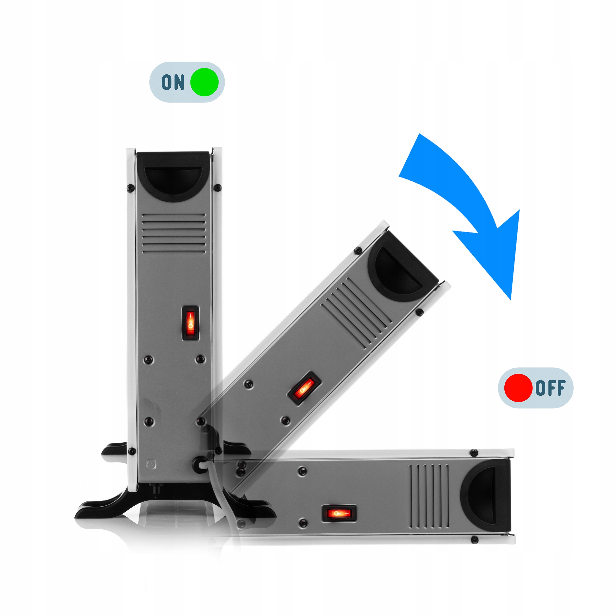Радиатор обеспечивает защиту в виде датчика наклона. Кроме того, благодаря удобной красной кнопке мы можем быстро и легко включать и выключать обогреватель.