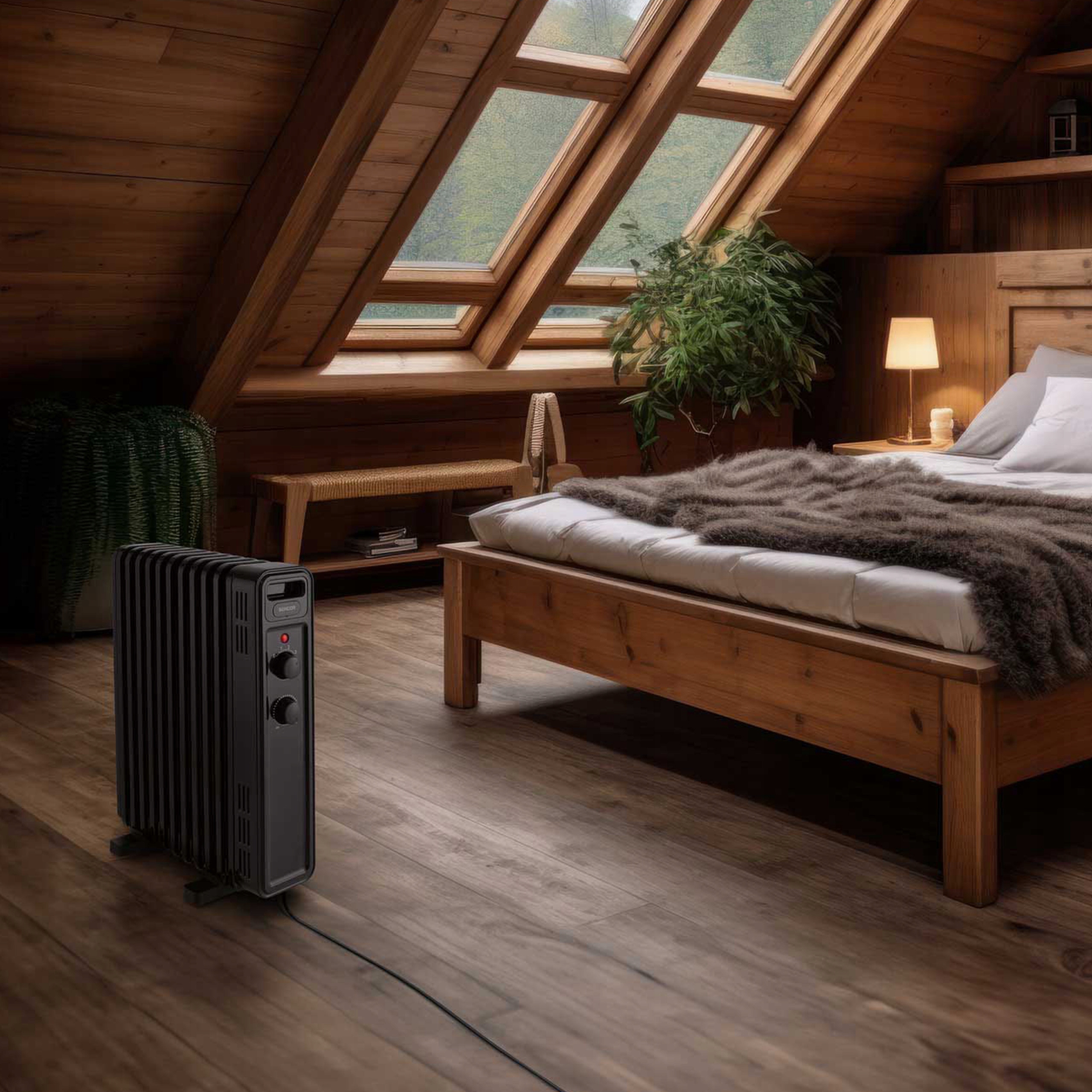 Ребра радиатора нагреваются и долго сохраняют тепло, отдавая его в окружающую среду даже после выключения устройства. Наслаждайтесь приятным теплом дольше и с меньшим потреблением энергии. Кроме того, благодаря легкой конструкции и практичным колесам радиатор можно легко переместить в любое помещение.