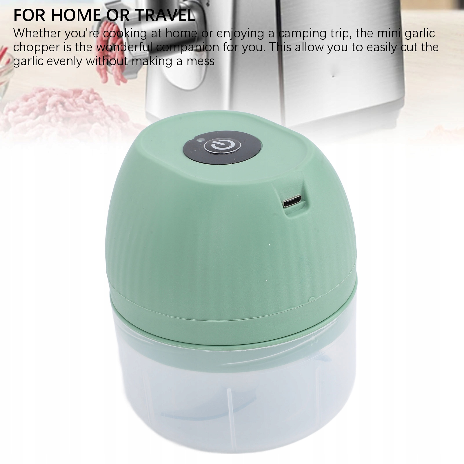5. Безопасный материал: электрический мини -бункер чеснока изготовлен из безопасного пластика. Конец ножа из нержавеющей стали и компактная конструкция для легкого хранения, идеально подходит для семей и лагеря