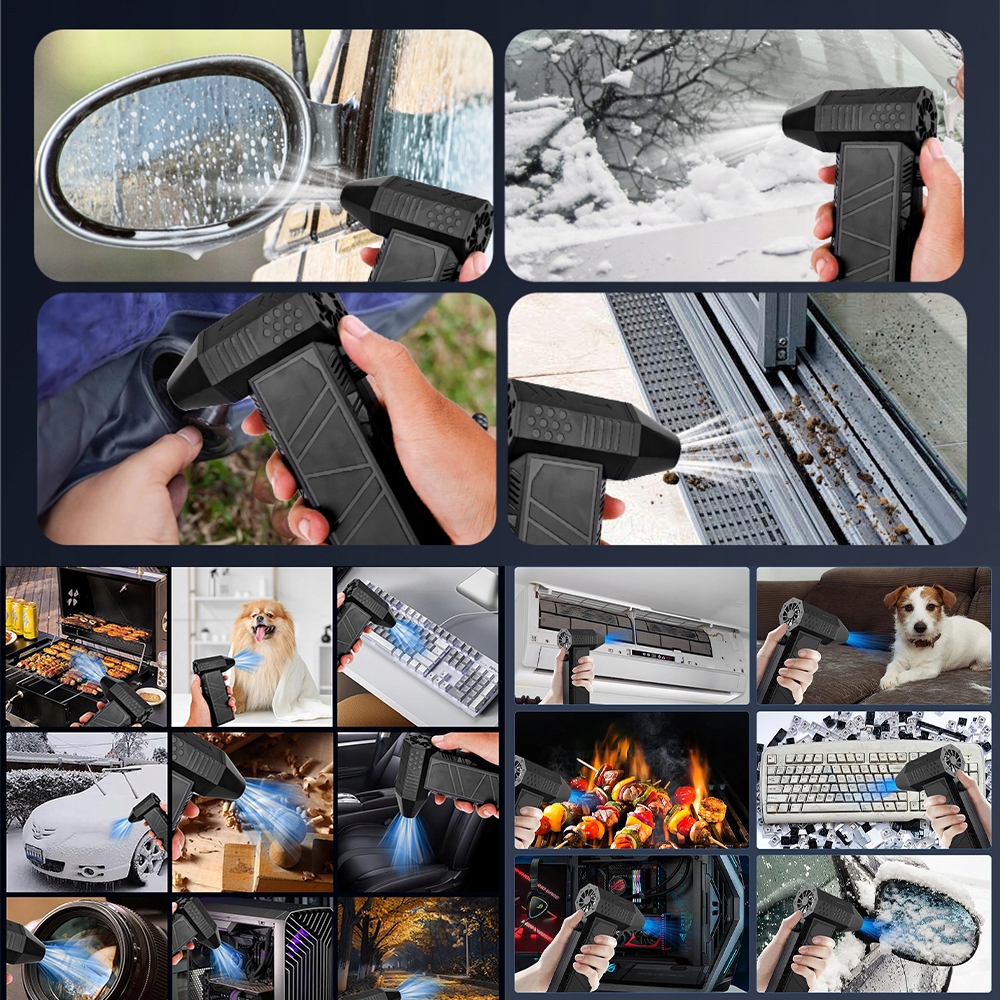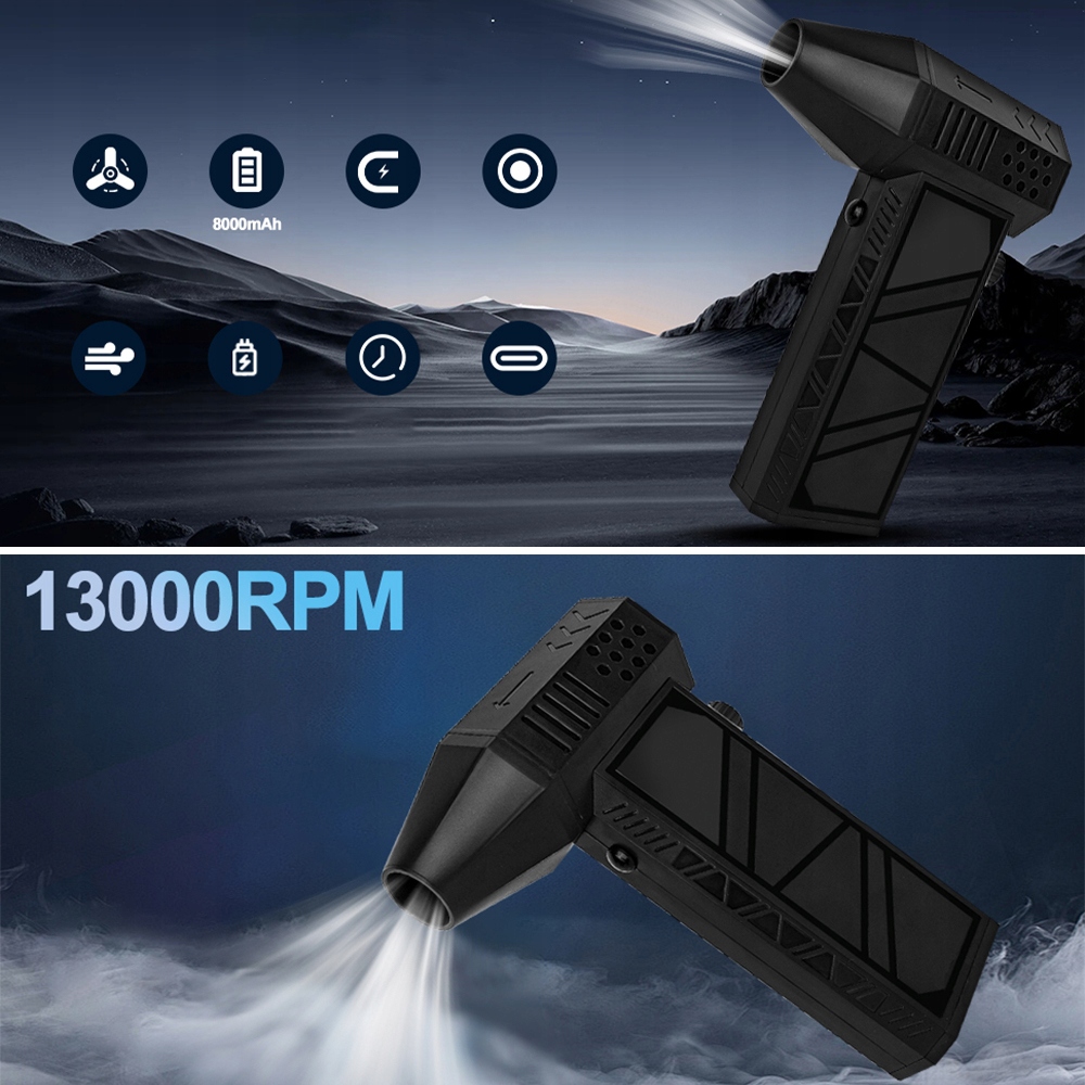 - Этот электрический воздуходувка имеет скорость двигателя 130 000 об/мин и пиковая скорость ветра более 52 м/с (Super Typhoon ≥51,0 м/с), что является сильной.
