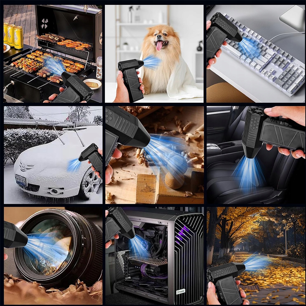 ► Миниатюрный и хороший дизайн: h1> - Сжатые воздуходувки имеют размер мобильного телефона с беспроводным дизайном, легкий и портативный, идеально подходит для кемпинга на открытом воздухе и удаления листьев в саду.