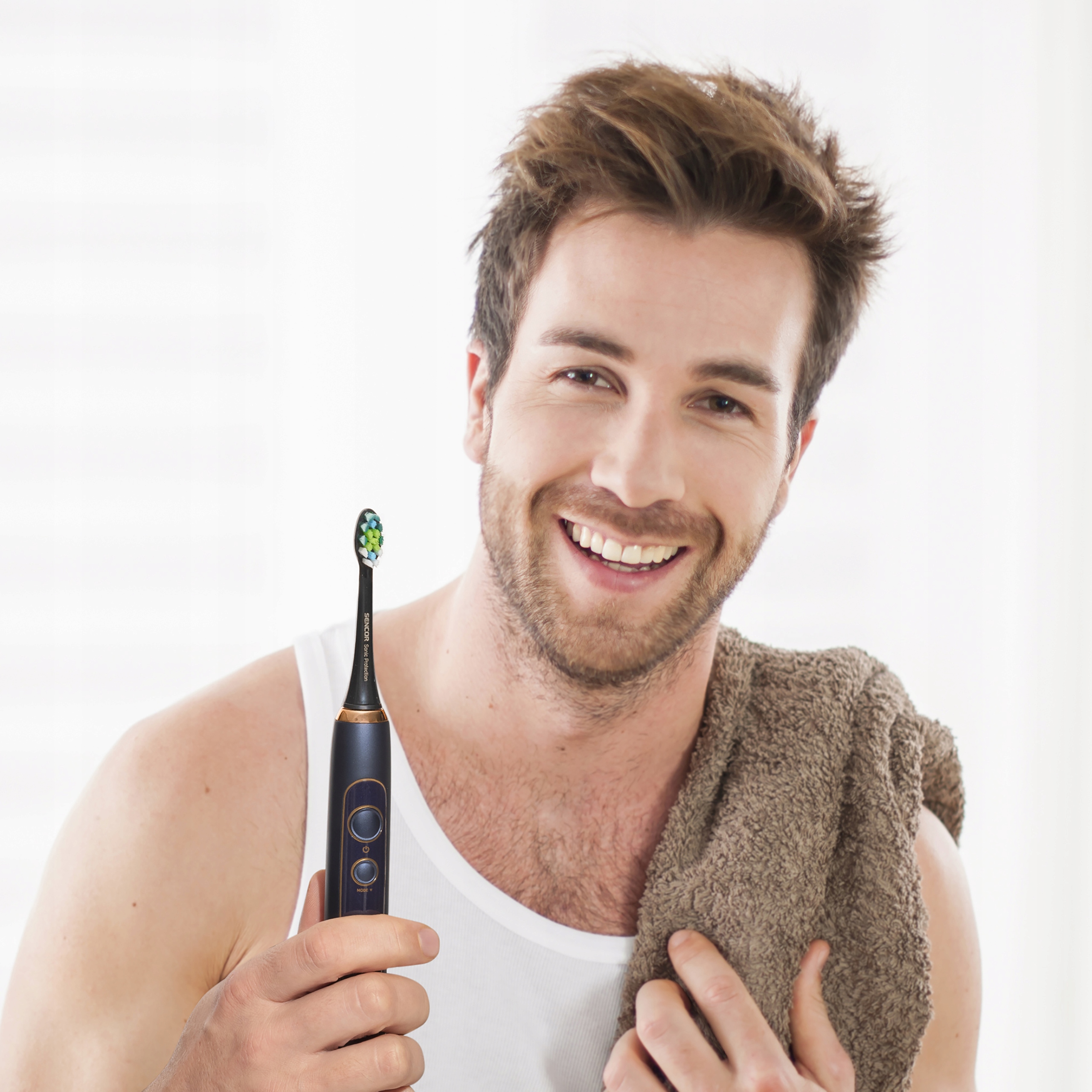 Интеллектуальный таймер измеряет время, подходящее для эффективной чистки зубов. После каждых 30 секунд чистки второй сигнал сообщает о необходимости изменения стоматологической страницы. Часы, помещенные в тело, - это полезное удобство. Через две минуты наша кисть автоматически отключается.